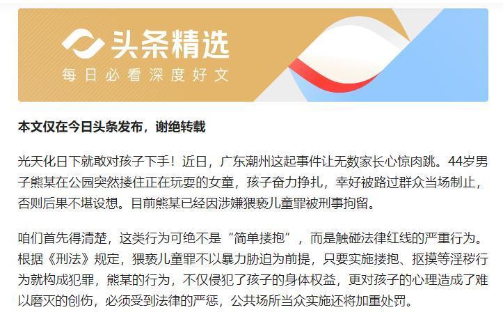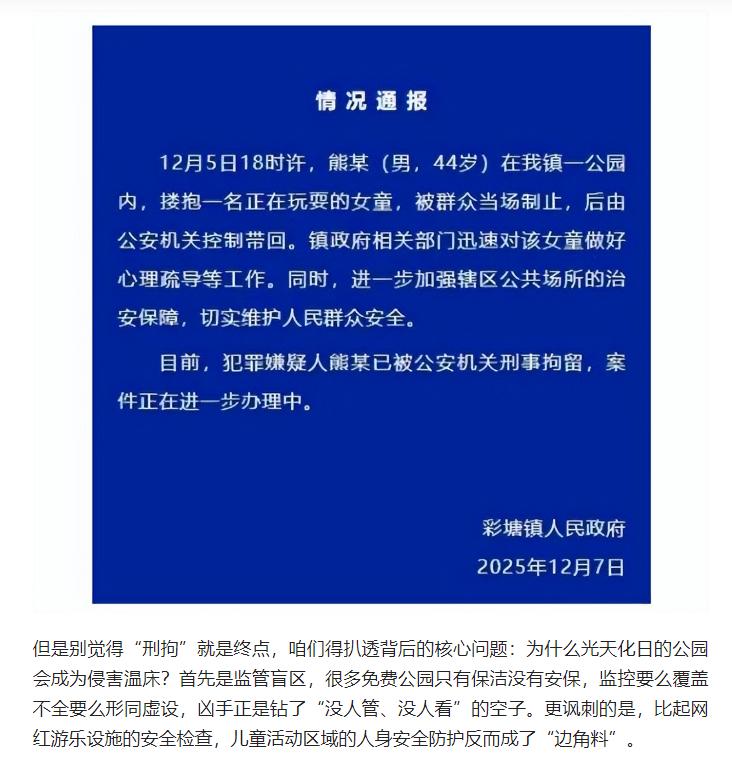 44 岁男子公园猥亵女童被刑拘!家长务必警惕这些安全隐患 原文来自:丹哥N问《44 岁男子公园搂住女童涉嫌猥亵,这些方面家长一定要注意!》