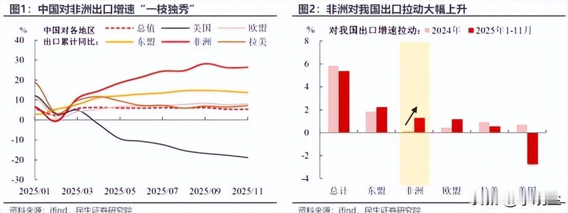 (一)最近,有关方面公布了2025年11月份外贸数据,有个细节其实非常扎眼:——对非洲出口单月同比增长27.6%,对整体出口增速的拉动接近1.5个百分点,一度超过东盟等其他经济体。 在很多人还在盯着“中美”“中欧”时,非洲已经悄悄从中国出口版图的边角地带,挪到了“拉盘主力”的位置。 几天前,笔者在《非洲基建从“出口通道”到“内部网络”:中国基建迎第二春》里刚提到:中国基建和装备出口的“第二春”,不在于国内再搞一轮大水漫灌,而在于非洲正在冒出来的一波“把自己连起来”的内生需求——修路、修港口、上电网、建走廊。 这一次,海关数据和卖货结构,等于给这个判断补了一份“实证版证明题”。 更重要的是,这组数据也帮我们回答了一个“灵魂拷问”:非洲这轮需求,到底是真需求,还是被中国廉价小商品“砸出来”的假繁荣? 从11月对非出口的结构看,答案其实相当清楚。 27.6%的高增速,背后不是“小商品外溢”,而是“重货”在走 券商与智库基于海关数据梳理发现:今年以来,中国对非洲出口结构发生了明显变化——华尔街见闻机械设备、电气机械、汽车、船舶、钢铁及其制品等五类机电产品,占非洲自华机电进口的约55%,对对非出口增速的贡献达到约75%;新能源“三件套”——锂电池、太阳能电池、电动汽车,对非出口增速全部是两位数;反过来,塑料、家具、纺织服装、鞋类等传统劳动密集型产品,占比在逐步下行,对增量的贡献越来越边缘。 简单翻译一下就是:这波对非出口的“高光时刻”,不是靠一集装箱一集装箱的T恤、拖鞋、小玩具堆出来的,而是靠一船一船的机械、钢材、整车、光伏、新能源装备拉起来的。 这些货物对应的场景很清晰:修公路、修铁路、修港口;上电站、上输电网、上分布式光伏;城市扩张、工业园建设、货运通道升级。 如果说“小商品外溢”很多时候只是对外转移存量产能,那么这轮“重货出海”,本质上是在对接:非洲自己为了工业化、城市化、区域一体化,不得不投入的那部分资本开支。 换句话说,这不是“中国把货硬塞过去”,而是非洲确实有、而且已经开始真金白银买单的内生需求。 原文来自: