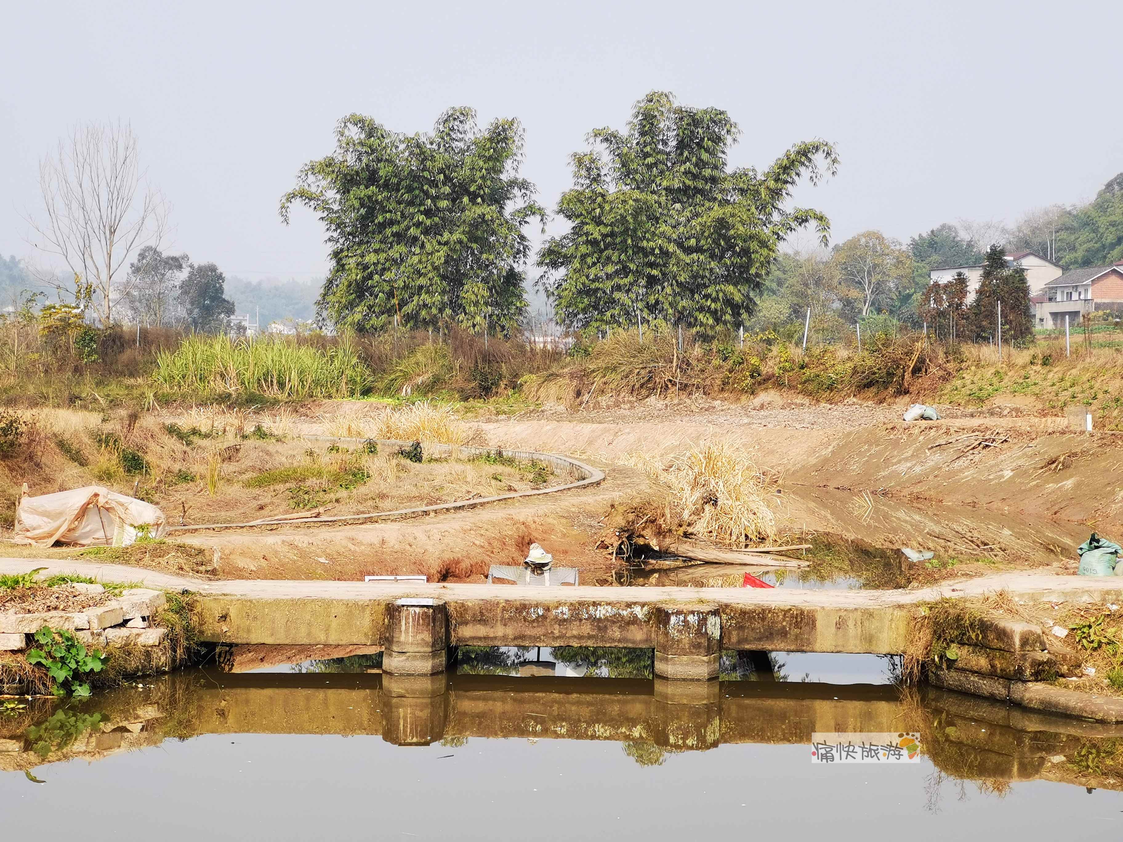 “行走乡间·发现自贡”——寻迹双龙桥河,在探访完肖瓦桥和王龙桥两座龙桥后,继续沿双龙桥河逆流而上,走进肖家榜河段又一座较为完整的石板平桥映入眼帘。