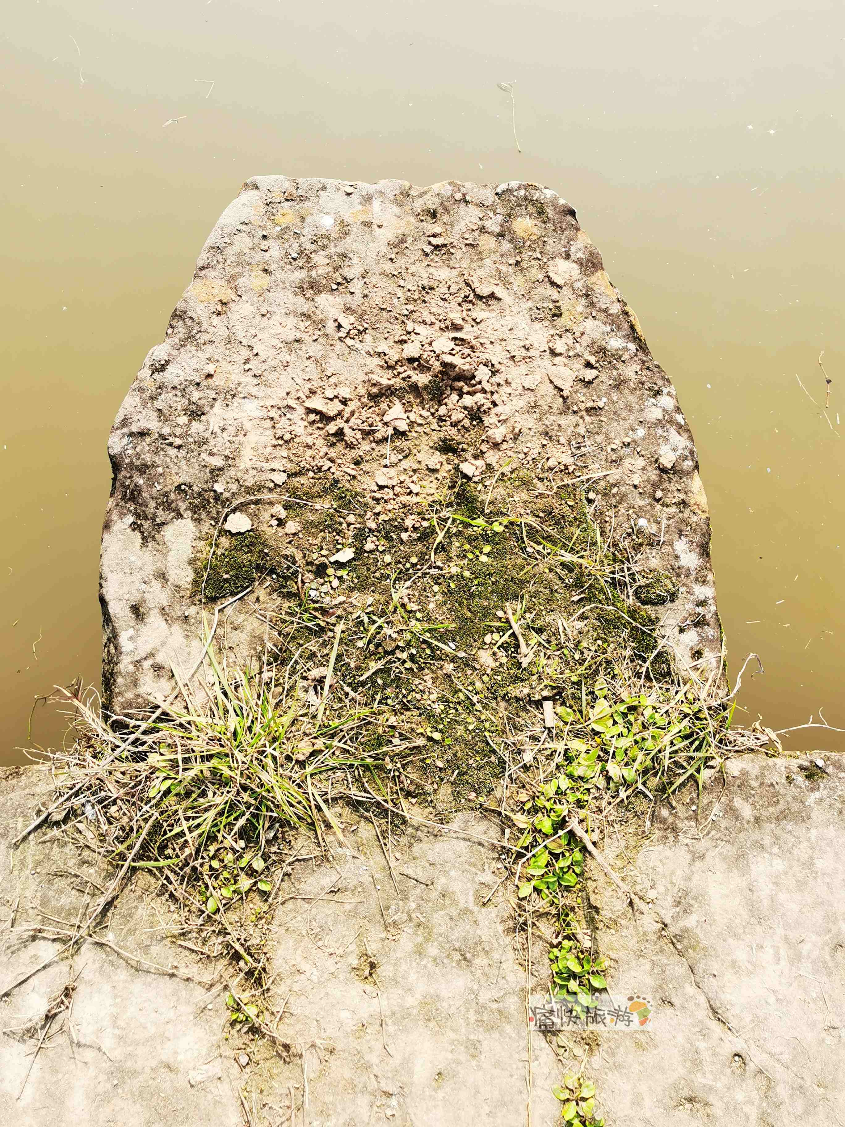 另一个下游侧桥墩保留着原貌,仔细勘察未发现有雕刻痕迹。
