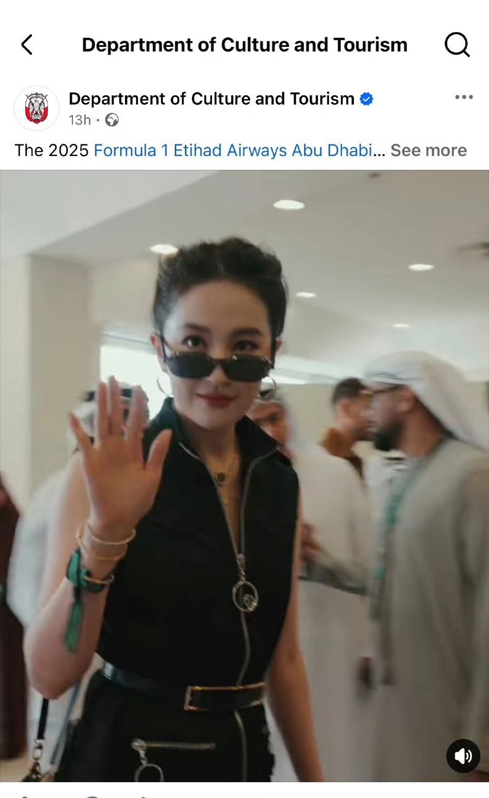 刘亦菲sayhi阿布扎比文旅发刘亦菲打招呼刘亦菲打招呼