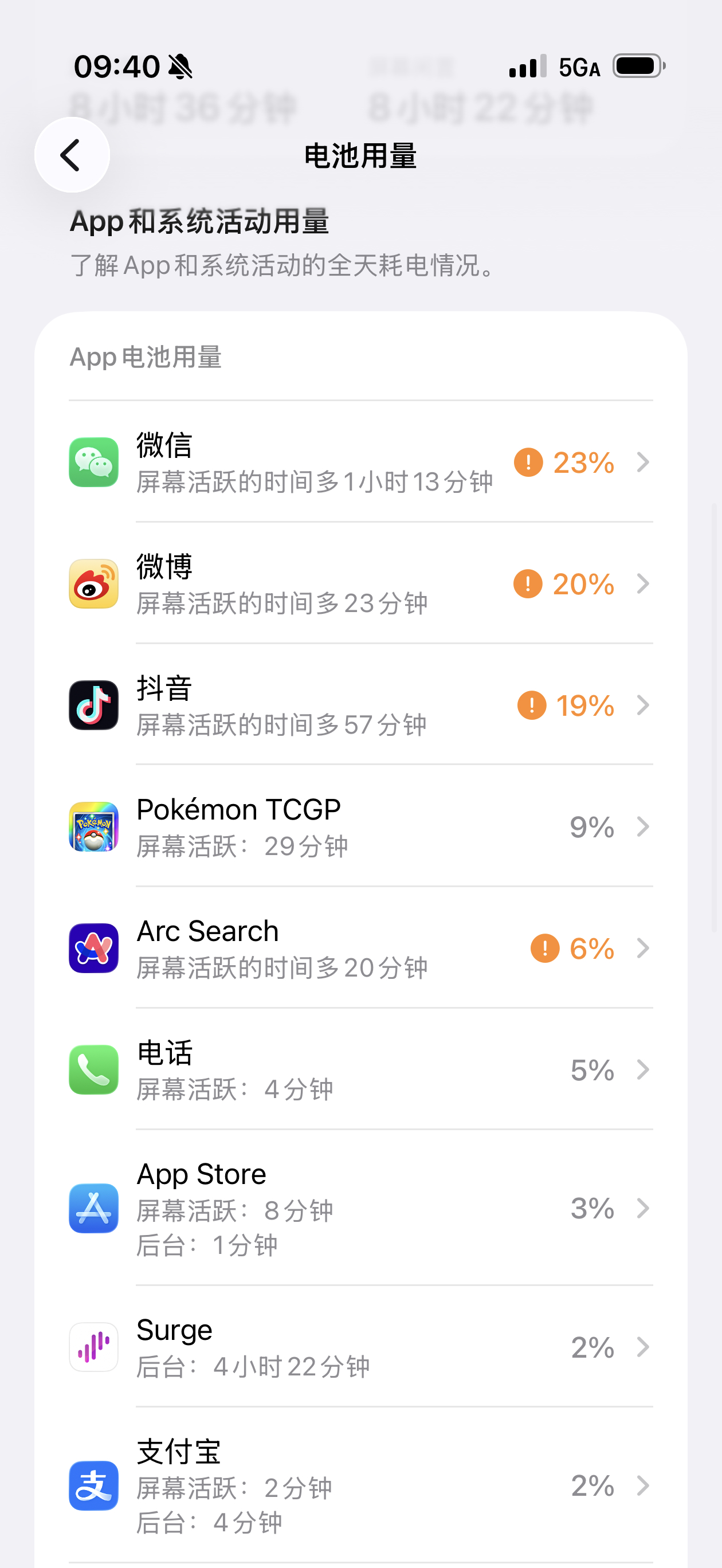 我手机里最耗电的 app 就是微信每天的屏幕活跃时间至少一个多小时其次就是微博、抖音、还有我在玩的游戏 TCGP大家手机里最耗电的 App 是哪个?