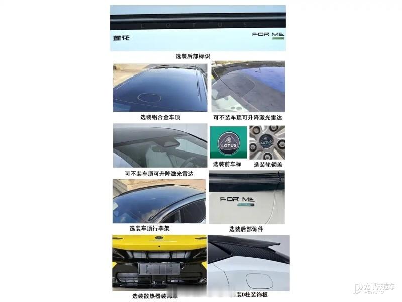 莲花FOR ME实车亮相 插混SUV/420公里纯电续航莲花旗下的全新插电混动SUV莲花FOR ME终于实车亮相了,之前也已经在工信部申报实车看下来造型很风格,虽说是新车,但是还是延续了路特斯Evija孔隙式的设计,在两侧凌厉的折线看着十分吸睛,而且整体造型设计有点赛车式的空气动力学设计,SUV的造型也可以透露出飒爽战斗的感觉。莲花FOR ME车辆数据:-车身尺寸:长宽高分别为5103mm/2019mm/1636mm,轴距为3019mm,宽高比1.24,与ELETRE完全一致。-车辆配置:车辆提供升降激光雷达、行李架、轮圈、制动卡钳、电动拖车钩等。-动力方面:2.0T发动机+前后双电机组成的插电混动系统,综合最大功率952马力,0-100km/h加速时间3.3秒。基于900V高压平台打造,配备70kWh电池组,CLTC纯电续航420km,具备6C快充倍率。这次莲花的新轿跑FOR ME从视觉到性能都是吸睛和亮眼的,不局限于低趴的降低风阻,而是两边的腰线收紧,这个造型设计确实精彩,属于是性能和审美既要又要了,就是不知道价格能不能也让我们亮眼一下。莲花跑车路特斯