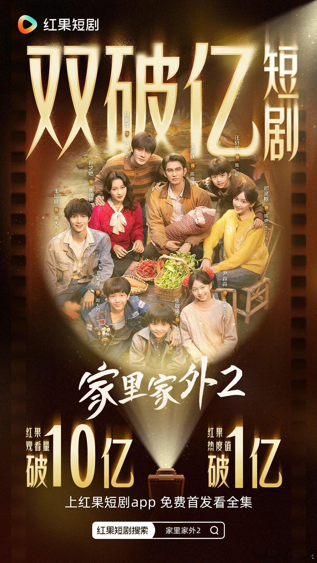 《家里家外2》成云合播放量最快破10亿的短剧,连续5日红果站内热度破亿!自12月4日上线,出品家里家外2 迅速席卷短剧市场。红果短剧平台上,该剧热度值连续5天冲破1亿;上线仅4天,站内播放量突破10亿大关。该剧成为云合数据最快突破10亿播放的短剧,印证其市场号召力与观众认可度。剧中由、演绎的重组家庭故事,以川渝地域为衬,聚焦日常烟火与亲情羁绊。凭借真挚的情感刻画与时代共鸣感,该剧成功打动千万观众,成就现象级口碑。2025年播放量最快破10亿短剧