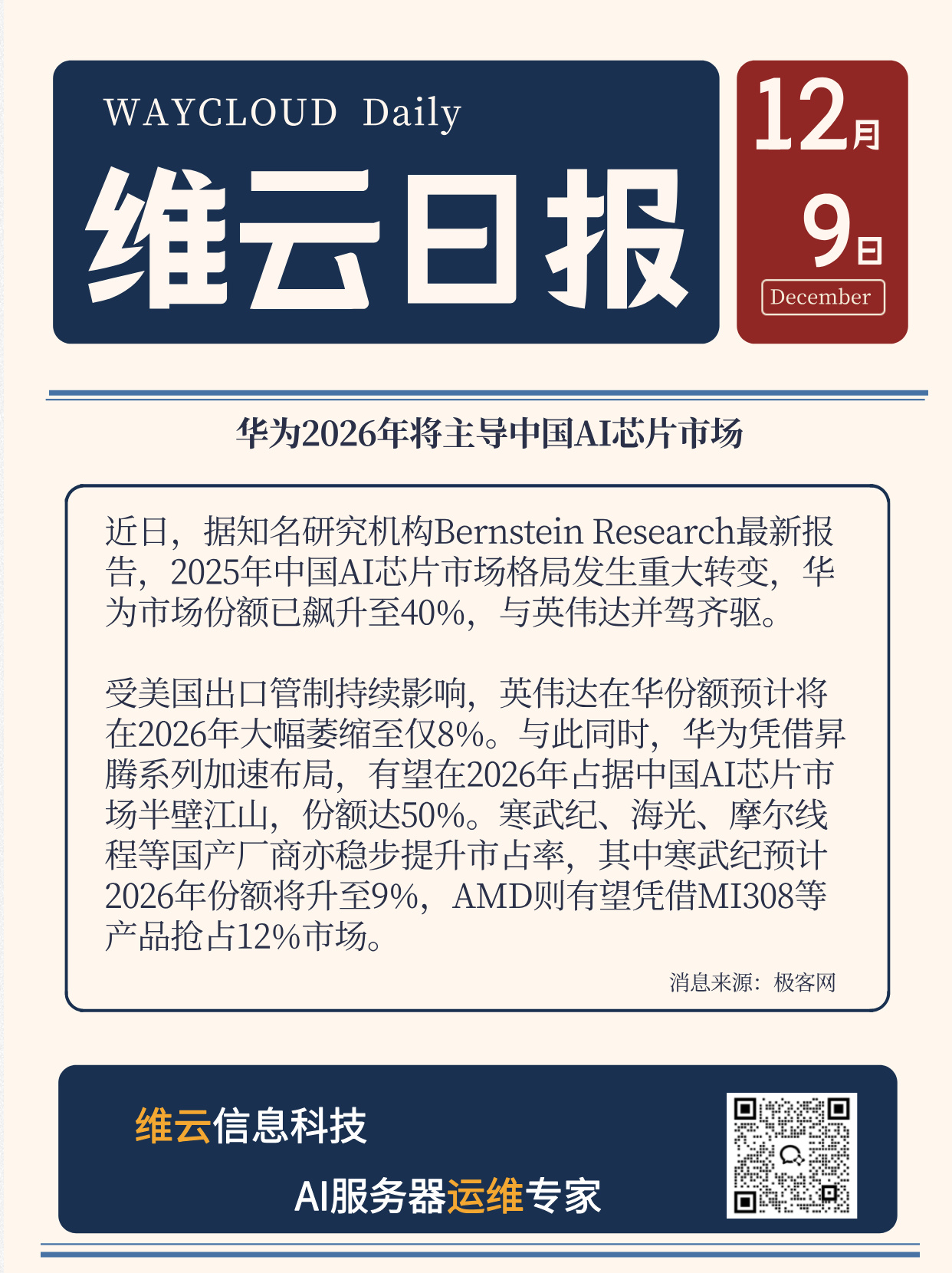 Bernstein报告:华为2026年将占中国AI芯片市场50%,英伟...