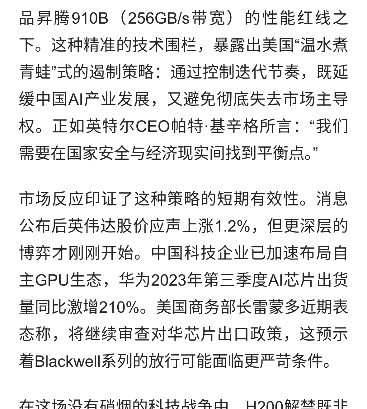 英伟达H200芯片解禁背后:中美科技博弈的微妙平衡术