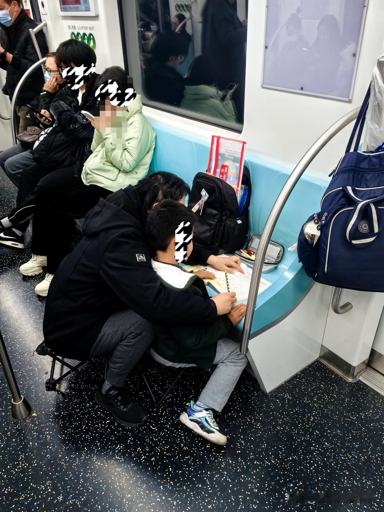 望子成龙,这样好吗? 今天坐地铁,在地铁上看到这一幕,心里五味杂陈。 第一,小学生有必要这样卷吗?连坐地铁的时间也要不放过。有必要吗? 第二,这样真的节约时间吗? 第三,车厢里来往走动的人对孩子没影响吗? 第四,车厢的晃动对孩子眼睛有影响吗? 第五,母子每次还带着凳子,这样坐着对其他人有影响吗?