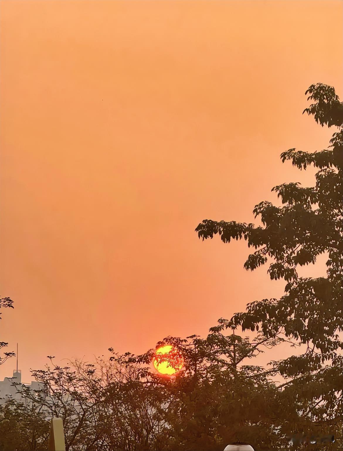 今天傍晚一抬头,撞见这橘得发暖的天,心突然就软下来了。 太阳像块刚熔好的糖,裹在树影里慢悠悠往下沉,连空气都浸着温温的甜。 风裹着点傍晚的凉,吹得叶尖晃,我站在楼下盯着这团光,连手机都忘了掏——这种不用滤镜的暖,攒够了能撑好几天的开心。 好像生活里的小确幸,就是撞见这样的黄昏:天是软的,光是糯的,连路过的风都在说“慢点儿走”。