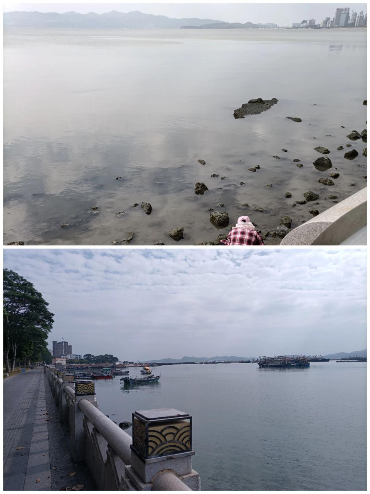 又被地图骗了,导航的妈祖庙原是个村庙(图1)[捂脸],车都打不到,来的司机说是不是被骗到这里来的,我说你怎么知道,他说已经有很多人被骗到这里了[捂脸],并告诉我们真正的是凤山祖庙。 那就先去善美广场吧!以为是个广场公园,不料也是濒临海边的,更绝妙的是走到海边,竟是汕尾市品清湖碧道-海上栈道(图2-4),长长的栈道,蜿蜒曲折,纵横交错.,层层叠叠,太美了!站在栈道上既是最佳的观赏海景之地,又是近距离接触白鹭的稍息和飞掠,图2放大看就有白鹭。 沿着海岸可一路走到汕尾海滨公园和观澜栈道,路边的景色也很美,渔妇在海滩捡着生蚝(图5-6),最后决定还是去凤山祖庙看一下,沿途发现一座耶稣堂因为大门紧闭(图7),所以少有人气!凤山祖庙确实雄伟多了(图8-9),烟雾缭绕,烧香跪拜众多,左右还有钟楼和鼓楼。 汕尾 海岸线 绝美 妈祖