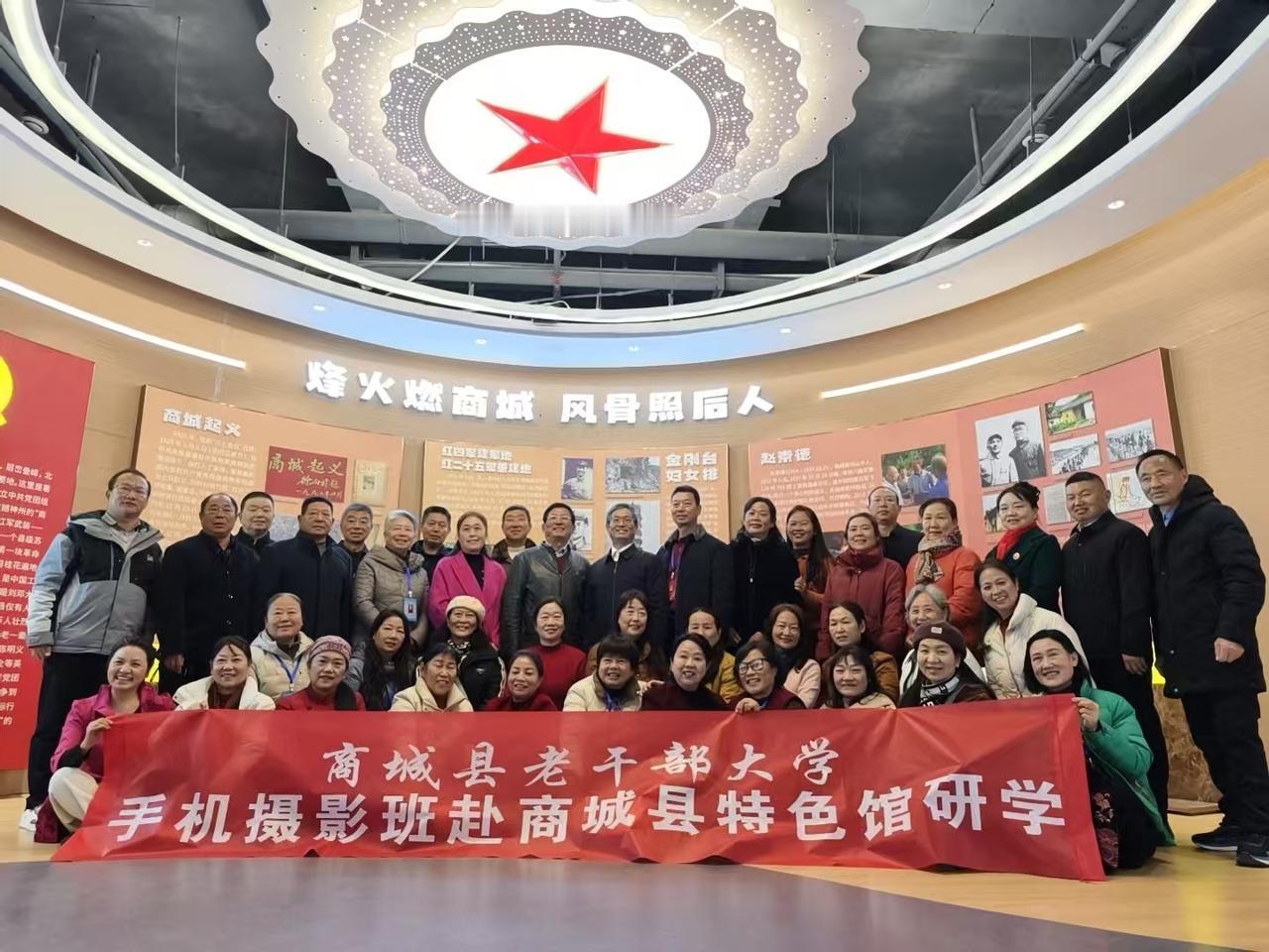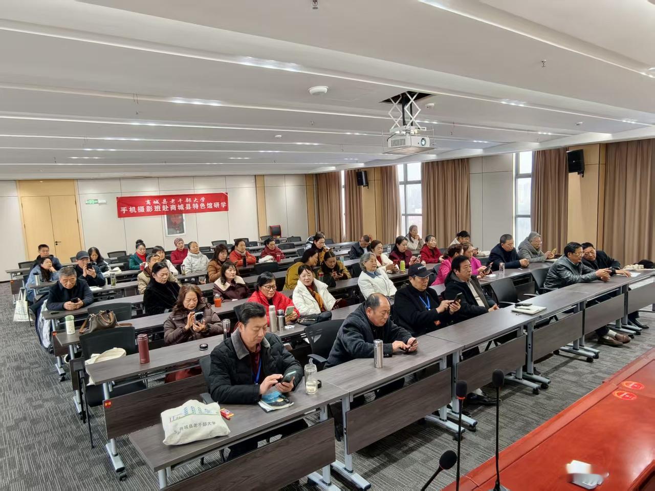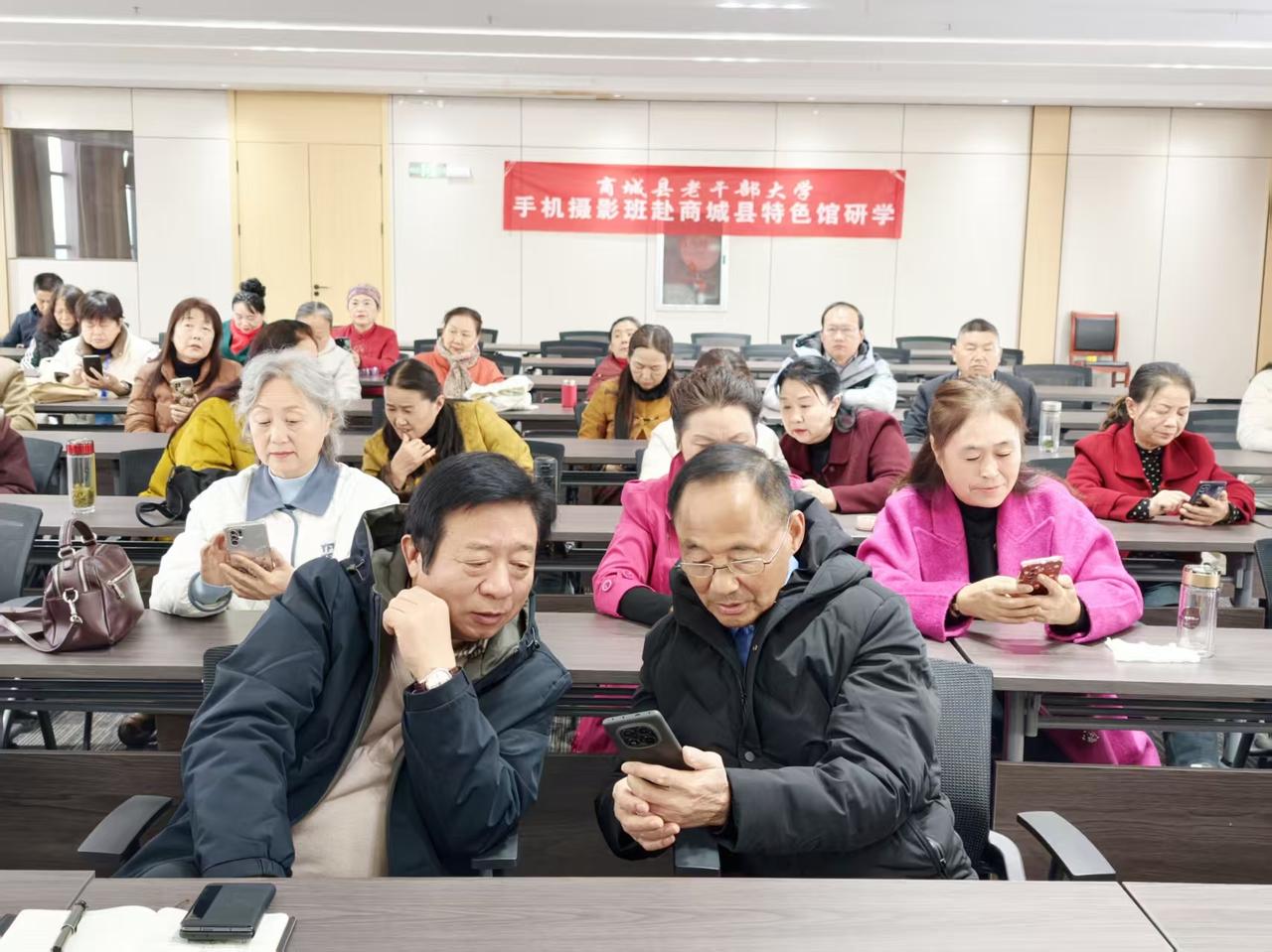 银龄结课礼,共话光影情! 2025年12月8日上午,商城县老干部大学手机摄影班的收官课程在电商大厦与商城特色馆拉开帷幕,这场满载收获与温情的课程,为学员们的秋季摄影学习之旅画上了圆满句号。 上午8:30,暖阳洒向商城特色馆的红色文旅展区与非遗展台,手机摄影班的师生们已悉数到齐,带着对摄影知识的热忱,静待最后一课的开启。主讲人游家明老师深耕手机摄影教学,此次收官课将重点落在照片分享的实用技巧上。为了让学员们带着问题学习,再针对遇到的问题逐一解惑,力求让每位学员都能掌握这一实用技能。课堂上,游老师结合学员们的拍摄作品现场演示,手把手指导大家将定格的商城美景、生活瞬间分享出去。 课程尾声,温馨的氛围弥漫在教室中。班长汪明武代表全班学员的心意,拿出精心准备的鲜花,一同赠予游家明老师伉俪,以表感激之情。游老师夫妇接过鲜花,他高兴幽默的说,学习结束,同大家一起分享美好时光,没有画上句号,只是个逗号、叹号、省略号! 随后,师生齐聚在商城特色馆的非遗文化体验区前合影留念,镜头定格下一张张笑脸永不散场!