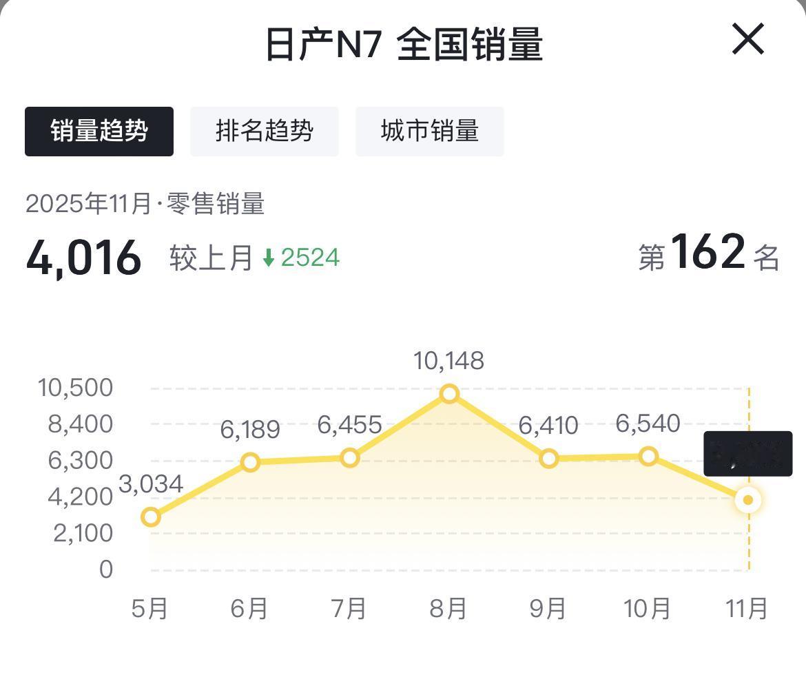 8月超万辆,夺取合资新能源汽车销量冠军,本来寄予厚望,但随后9-11月连续三个月销量逐渐下滑,按照这个节奏,N7也会走以前新能源车型的老路,被市场所淘汰,后边N6也危险了。大家觉得N7还有机会吗?【来自懂车帝车友圈】