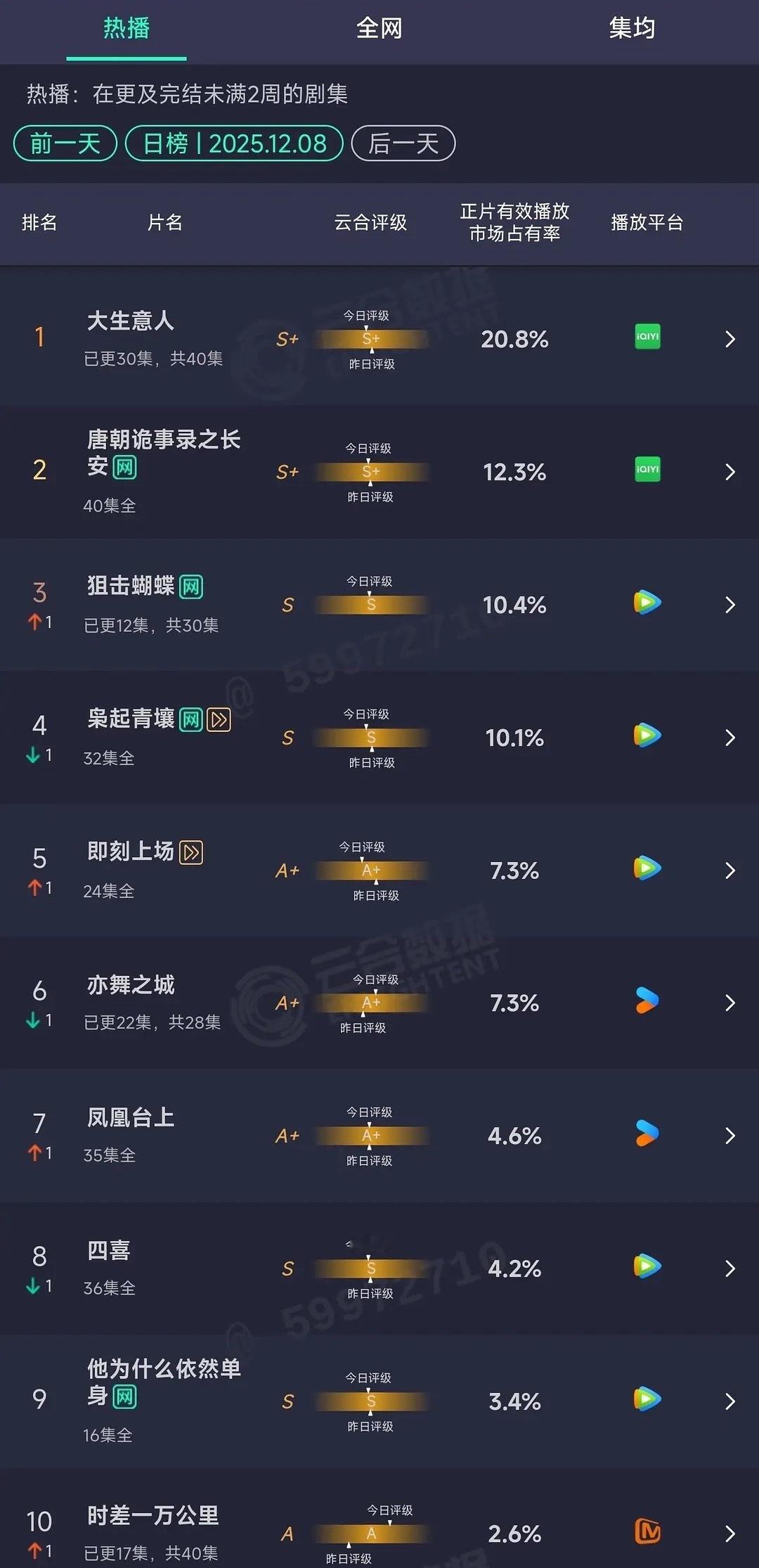 大生意人云合酷云占比都超百分之二十,越播越好啊,收视也古装第一