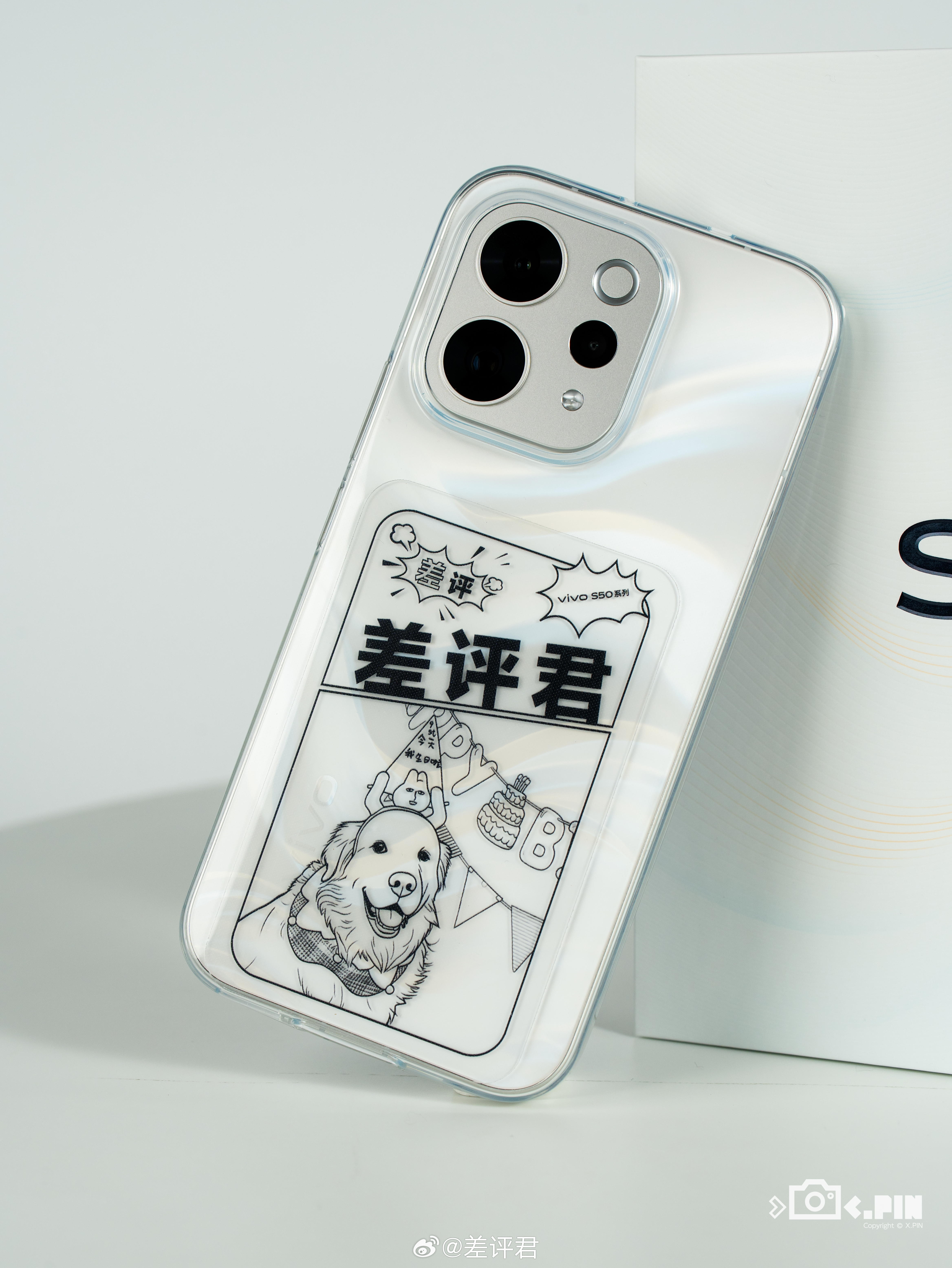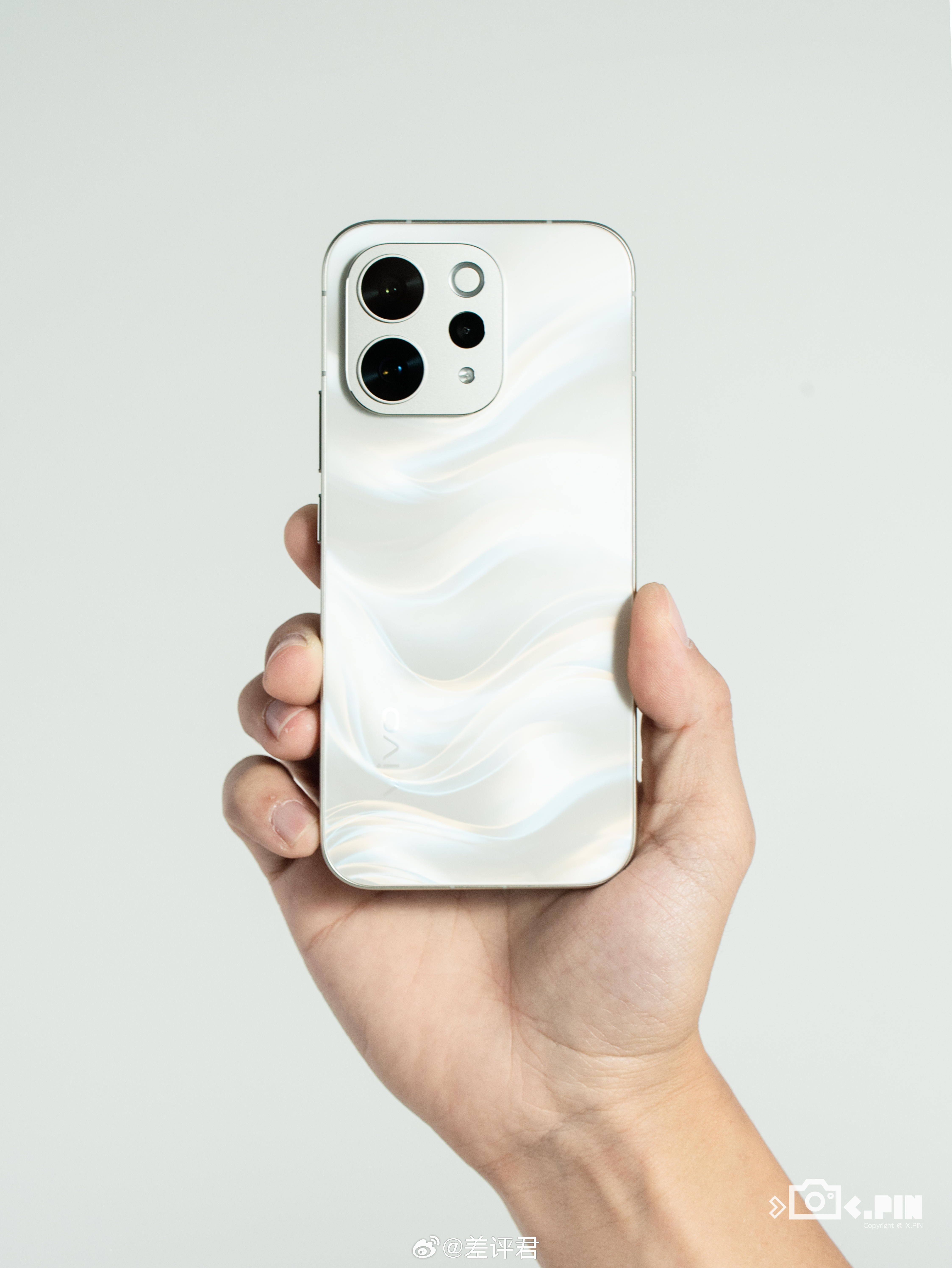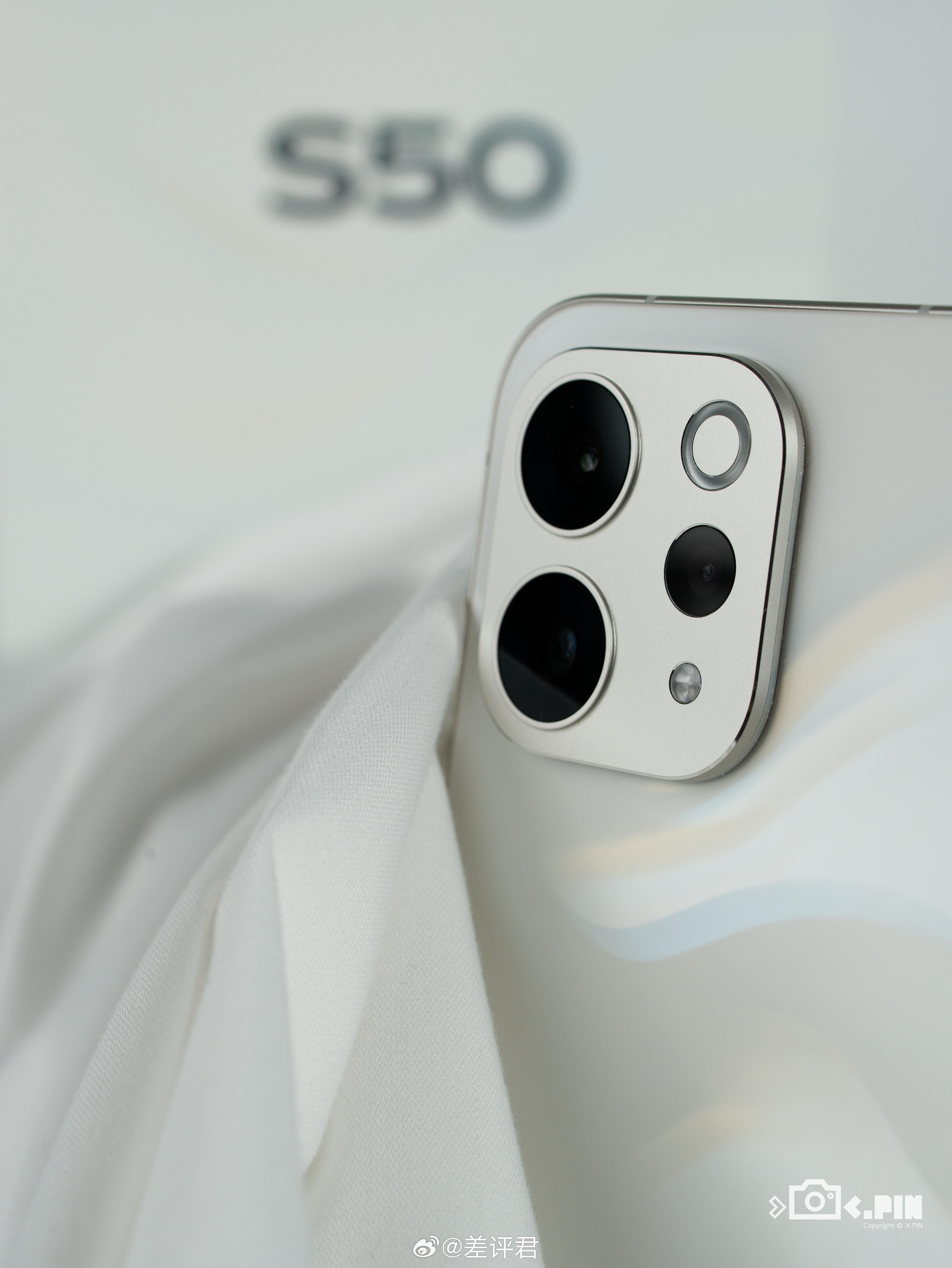 #差评说数码# 蓝厂的告白配色终于在这次 vivo S50 上回归了,珍珠白色调的缎面玻璃为基底,结合浅蓝色、浅金色的 S 形光影效果,据说是用了一个“纱缎光刻工艺”。再结合哑光金属中框和Deco,整体质感我感觉比 X90 那次的告白色更好,略微的磨砂质感摸着也挺舒服。另外这背板挺适合搭配清水壳的,看着挺梦幻,还可以往里面塞个 DIY 透卡做痛机#vivo S50#