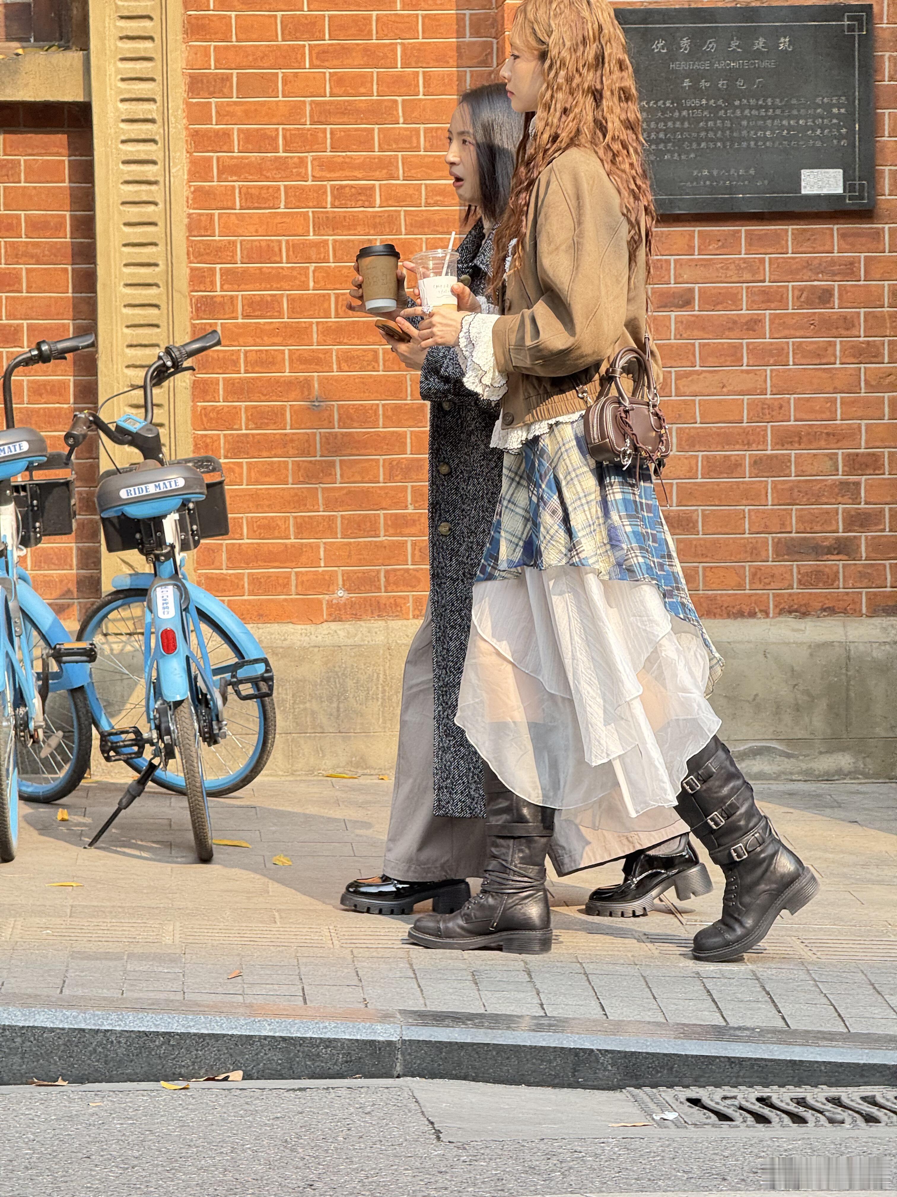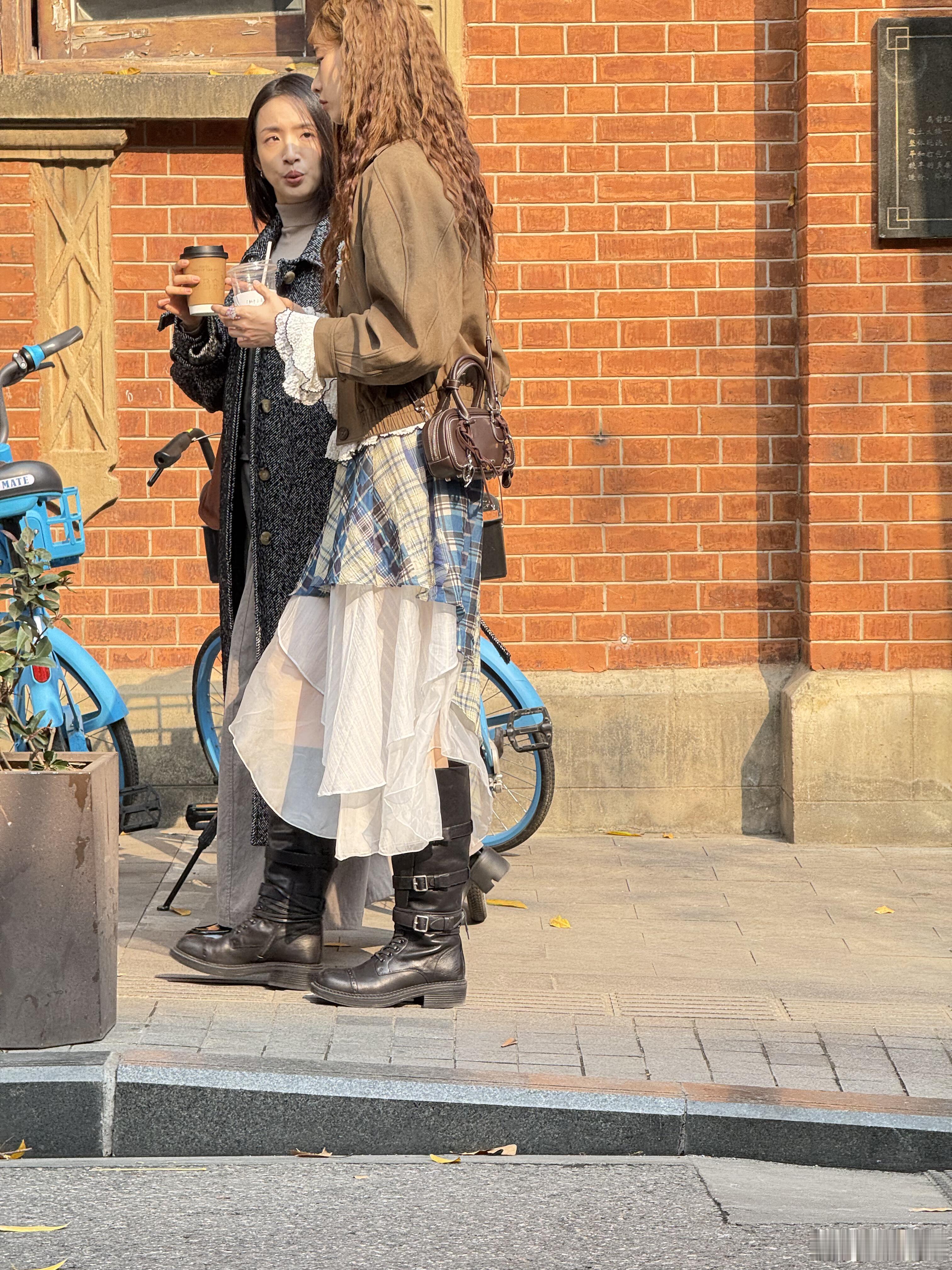 偶遇林依晨张艺凡在武汉青岛路拍戏,林依晨本人好瘦好美,依然是湘琴的样子!