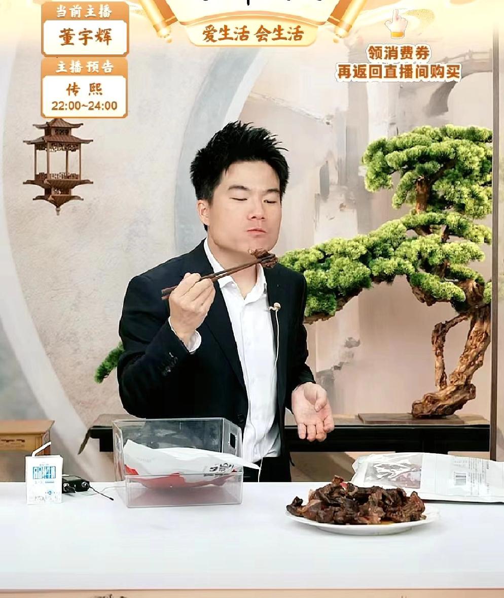 今晚徽州酱板鸭返场,马骞着重强调了要上锅蒸20分钟。一下让我想起了在安徽阅山河时,宇辉在安徽讲酱板鸭时,酱板鸭吃不动的那个可爱画面。现在看来,那时确实没有蒸熟。 今天的口味很好,宇辉说:“很好吃,有酱油味和甜味。”看来火候真的很重要。 火候不光是指做饭时火力的大小和时间的长短,还比喻紧要的时机或者品德、学问、技能的修养程度。 有的时候大家都说做人最重要的是火候也是在强调在人际交往和为人处世中把握时机、分寸和度的能力。 愿我们都做一个懂火候的人! 董宇辉 与辉同行