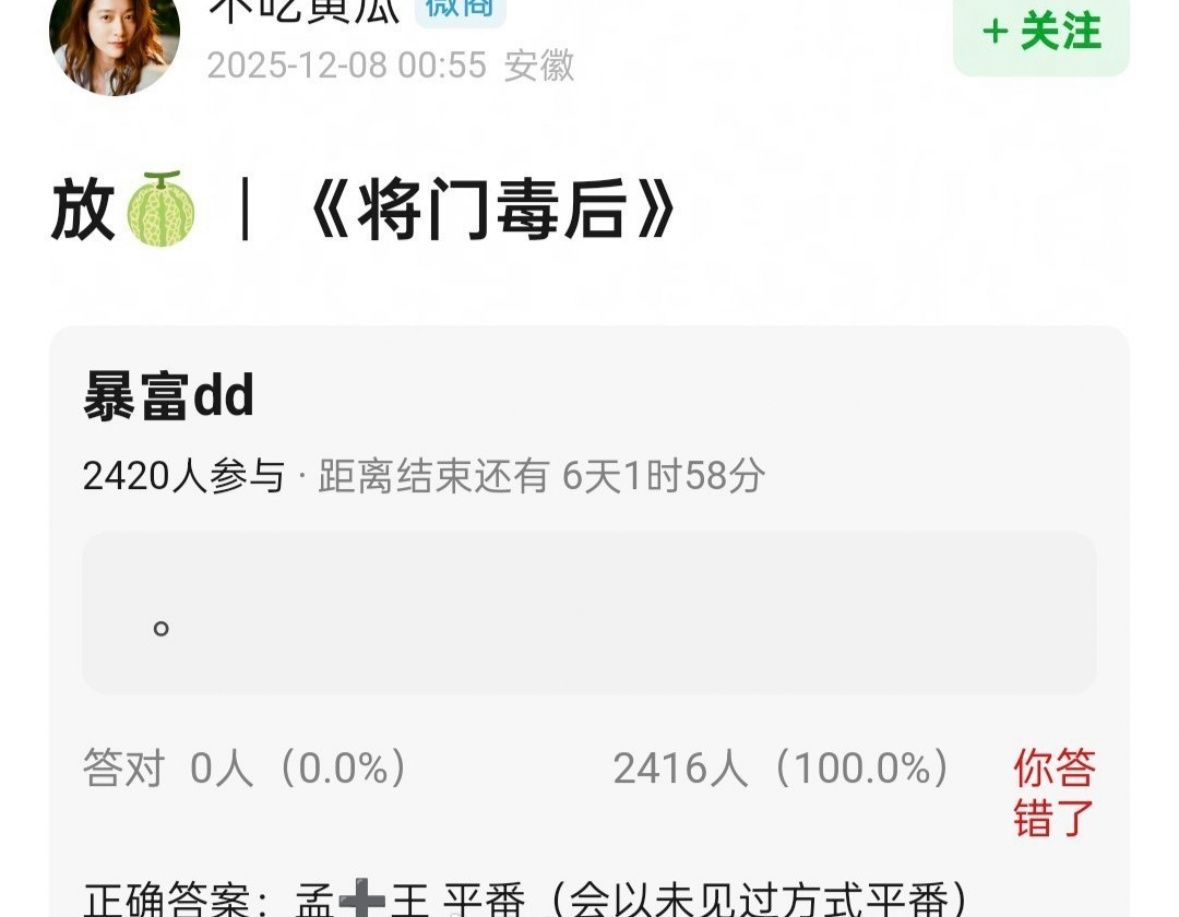 有🍉说将门毒后王鹤棣孟子义将以从未见过的方式平番,后来又被辟谣说不是平番。1月开机很快就知道了。这个剧真的不知道说啥了