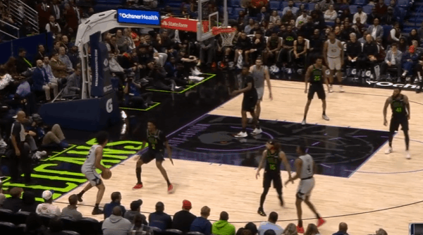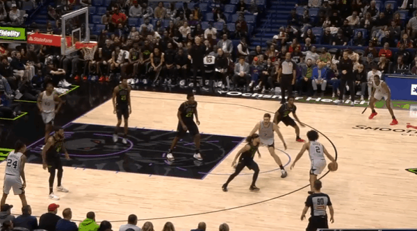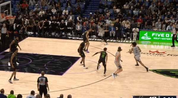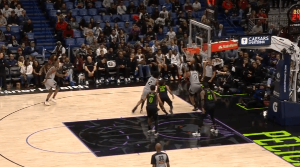 迪伦-哈珀观察:22+6稳健发挥&大心脏挑篮准绝杀图1上个回合鹈鹕通过2-2-1全场紧逼尝到甜头(造成失误并打成反击),这个回合继续2-1-2全场紧逼:哈珀拿球控场,从容不迫的利用节奏变化推过半场后直接找到左翼空位的巴恩斯。图2无球起手接球后衔接和索汉的挡拆配合:要到米西换防后先将其往左侧调动,迅速衔接胯下运球后的前脚“挖步”启动右路突破。突破并非依靠绝对的爆发力,而是通过技巧弥补——两次炸球加速接近篮下后反手挑篮造成干扰球。图4接到KJ的救球后面框转背身打菲尔斯,被撤凳子后迅速稳住重心,随即衔接炸球双脚起跳终结。图5挡拆行进间走Z字形将追防人卡在身后,强对抗直接撞飞麦格文斯后变向换到左手,先起步后合球左手挑篮打进。图6佯装走掩护墙一侧骗过菲尔斯后迅速变向拒绝掩护,衔接“垫步”后出手持球三分。图7,“Stagger Decoy”,佯装为弱侧借助“Stagger”兜出的巴恩斯上球,在菲尔斯扭头观察弱侧的瞬间立即变向启动左路突破,行进间利用肘部和对抗维持身位优势后起跳空中对抗,隔着奎因上篮打进。图8挡拆行进间吸引奎因回退禁区,随后回身找到外拆的奥利尼克。图9借助科内特的假掩护起手,行进间连续两次沉肩对抗往篮下碾,随后迅速衔接前转身误导后的背转身双脚起跳挑篮终结。图10混乱局面下底角接球单打琼斯,前脚“挖步”衔接交叉步沿底线启动突破的同时对抗撞开琼斯,直杀篮下后迎着协防的奎因起跳滞空极限勾手打进。图11准绝杀一球:无球起手上提接球,老六倒地后面对贝的换防径直向前突破,佯装变向走左路调动贝防守重心后实则“in&out”走右路突破直杀篮下,行进间沉肩强对抗顶开贝后立即衔接合球双脚起跳,空中拧过身子挑篮打进,133-132。哈珀准绝杀鹈鹕马刺战胜鹈鹕