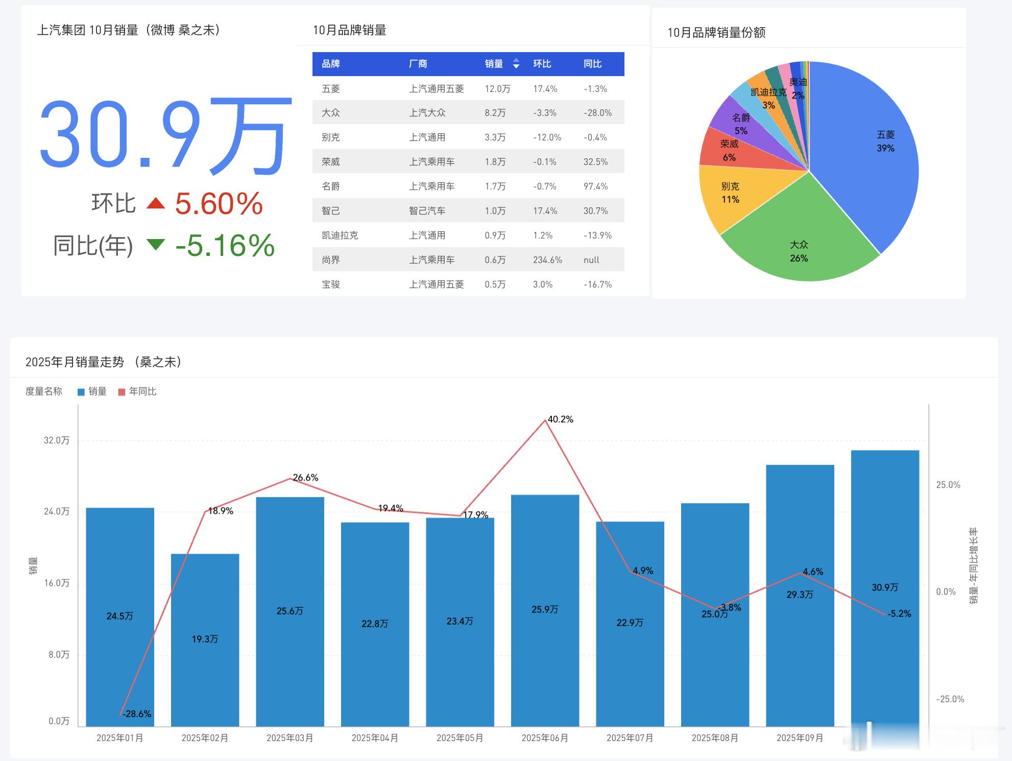 上汽集团,月度销量桑之未汽车行业观察