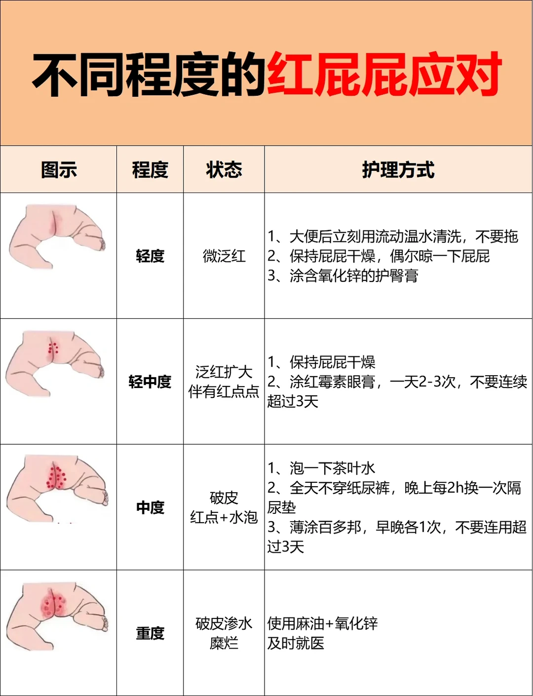 1、不同阶段的红屁屁护理