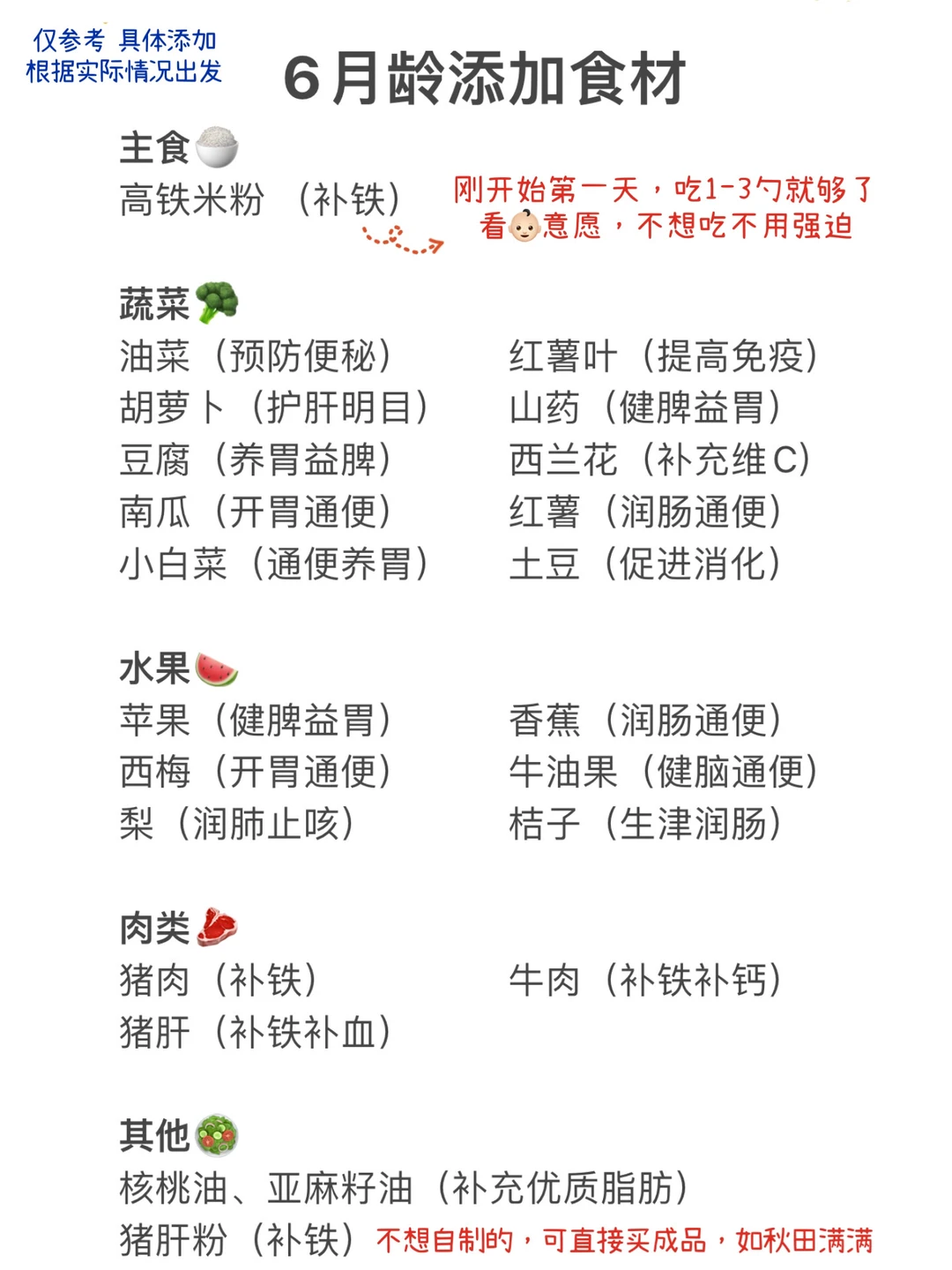 注:添加食材仅参考,妈妈可根据自家实际情况进行添加。