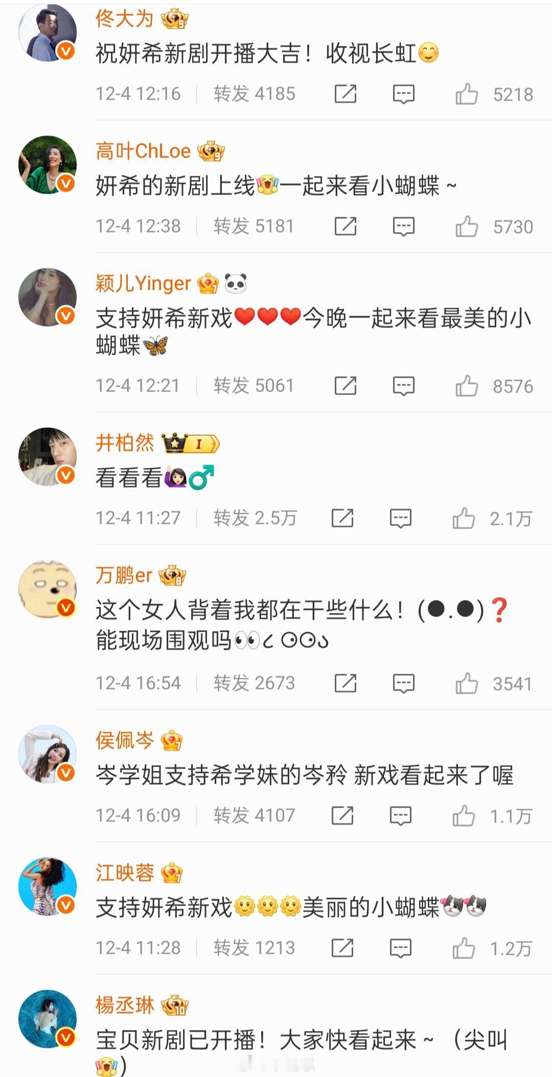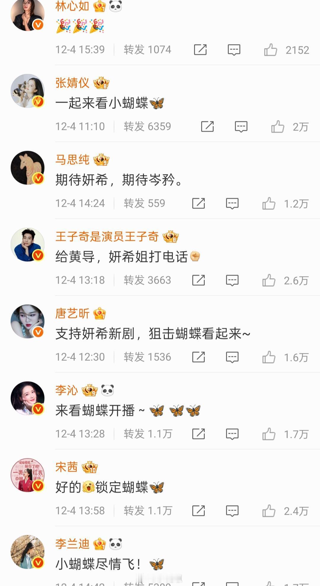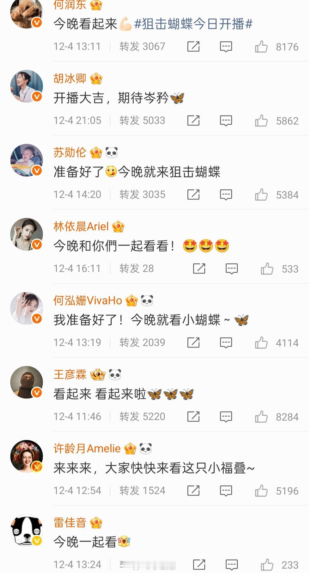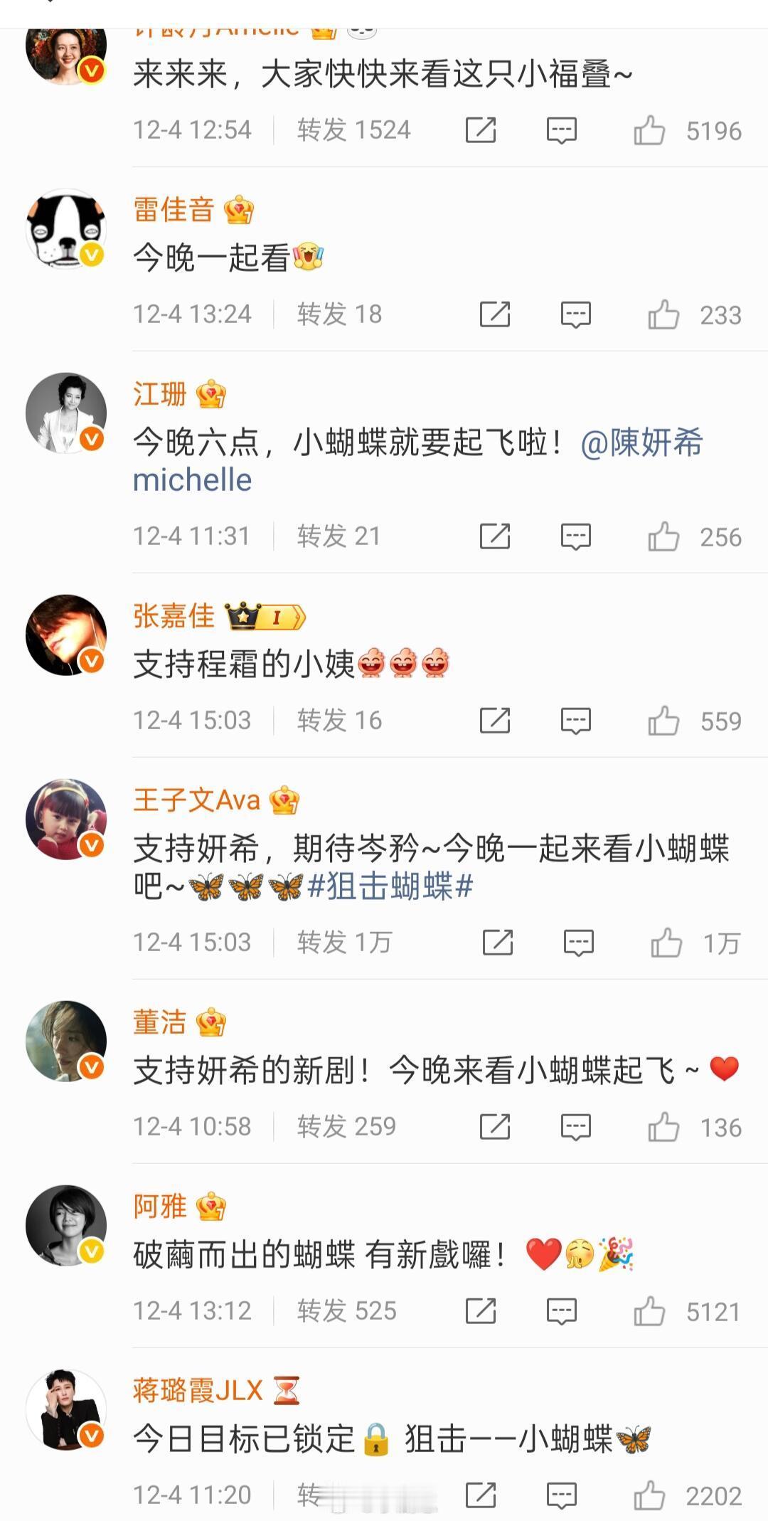 陈妍希的人脉好丰富和神奇呀!《狙击蝴蝶》开播,很多感觉跟她完全没有交集的艺人帮忙转发宣传,真的挺神奇的,感觉她人缘是真的好好呀!陈妍希‖狙击蝴蝶‖
