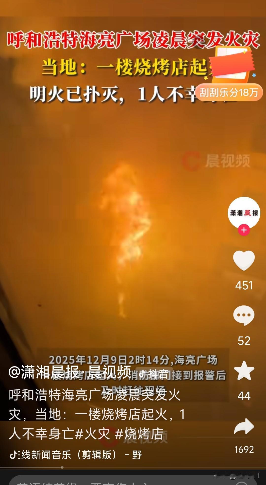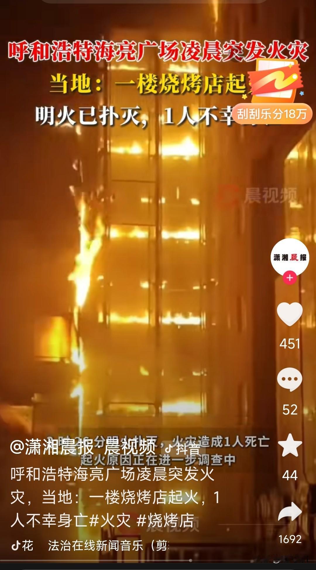 一定要注意防火,呼和浩特市一烧烤店起火引起整栋大楼着火,辛苦一辈子,火灾都烧没了。 都辛苦一年了,一定要排查隐,冬天都关门关窗的,增加了危险,冬天用电取暖也多,总而言之,排查隐患比事后诸葛亮要好很多。