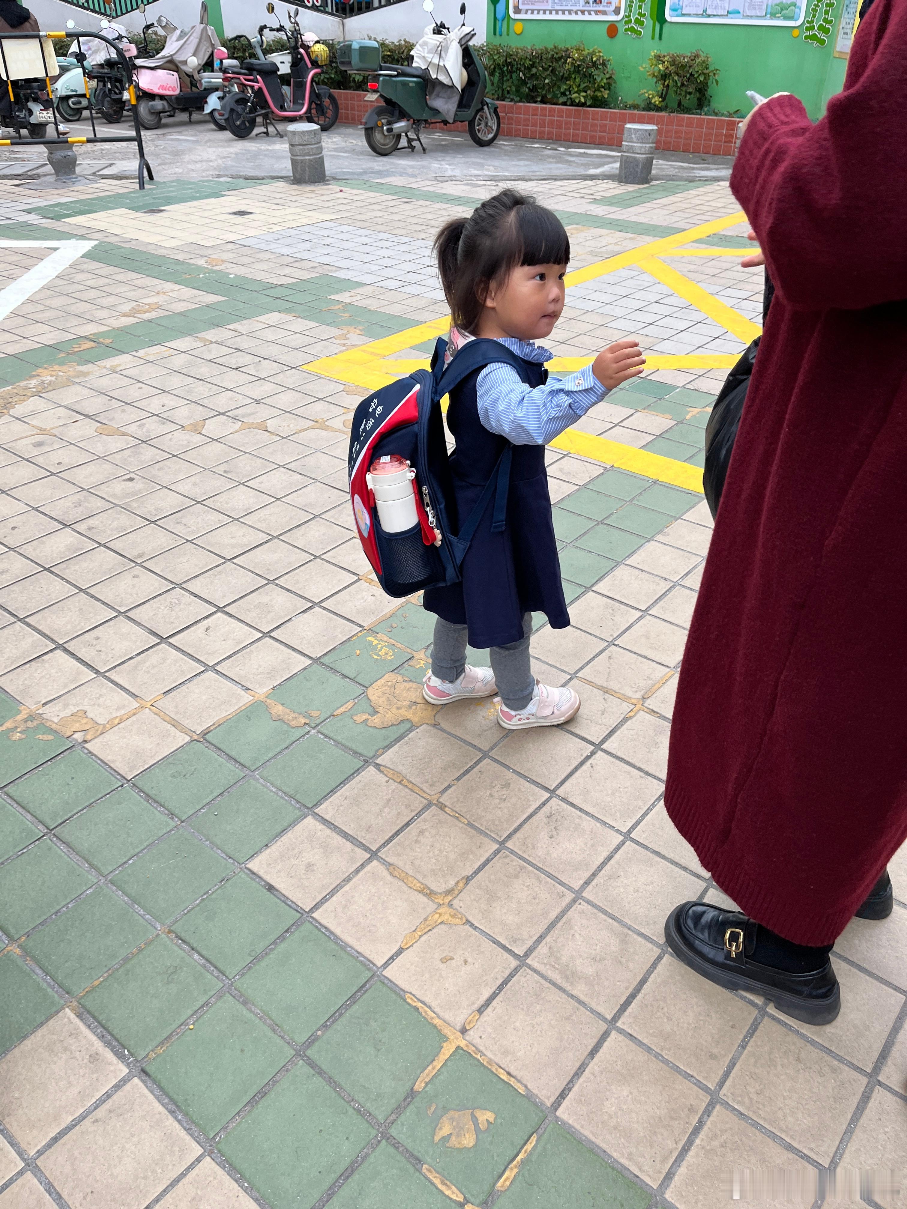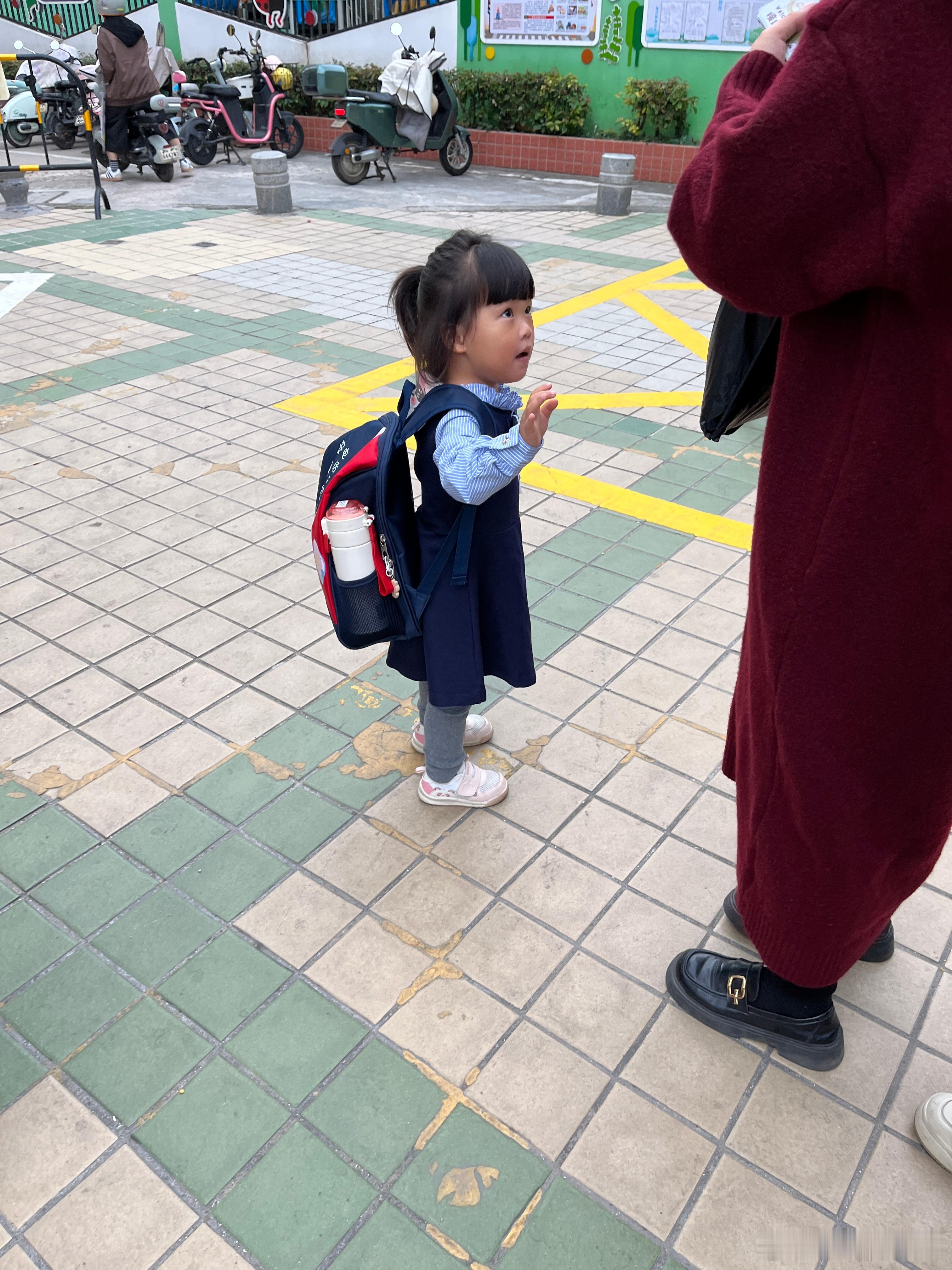 今天来公园玩,碰到她同学,好开心,一路追着人家,叫人家的名字婆婆借100万照顾车