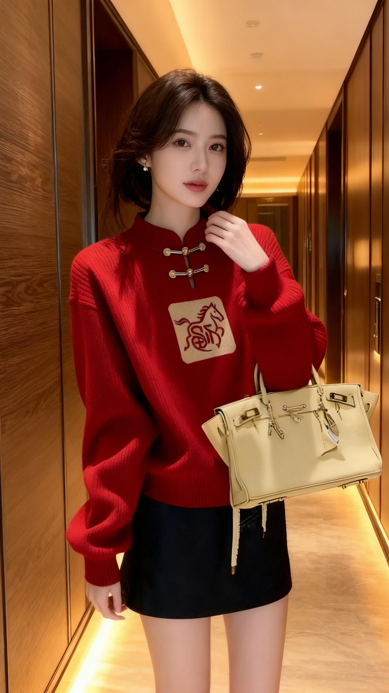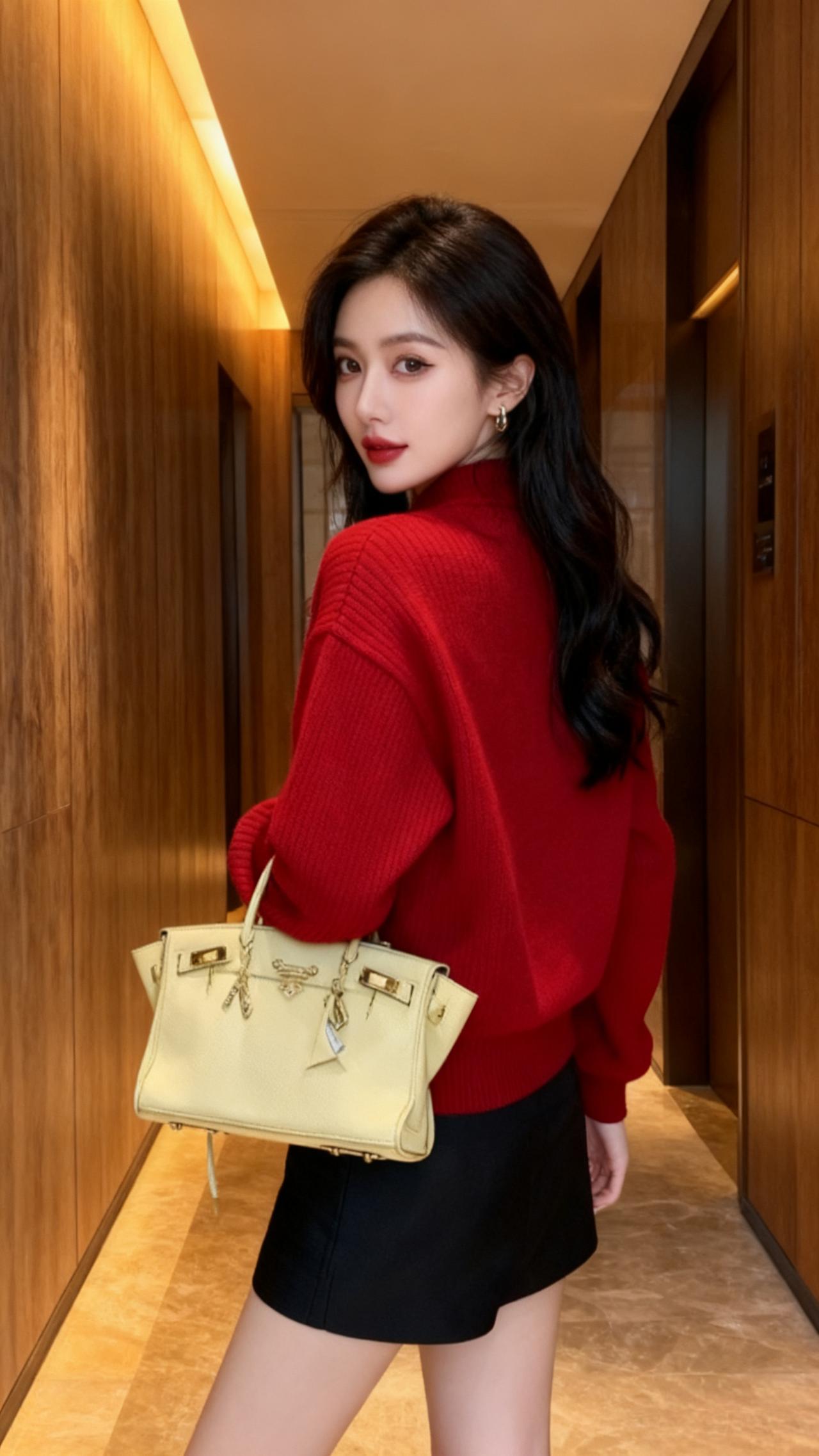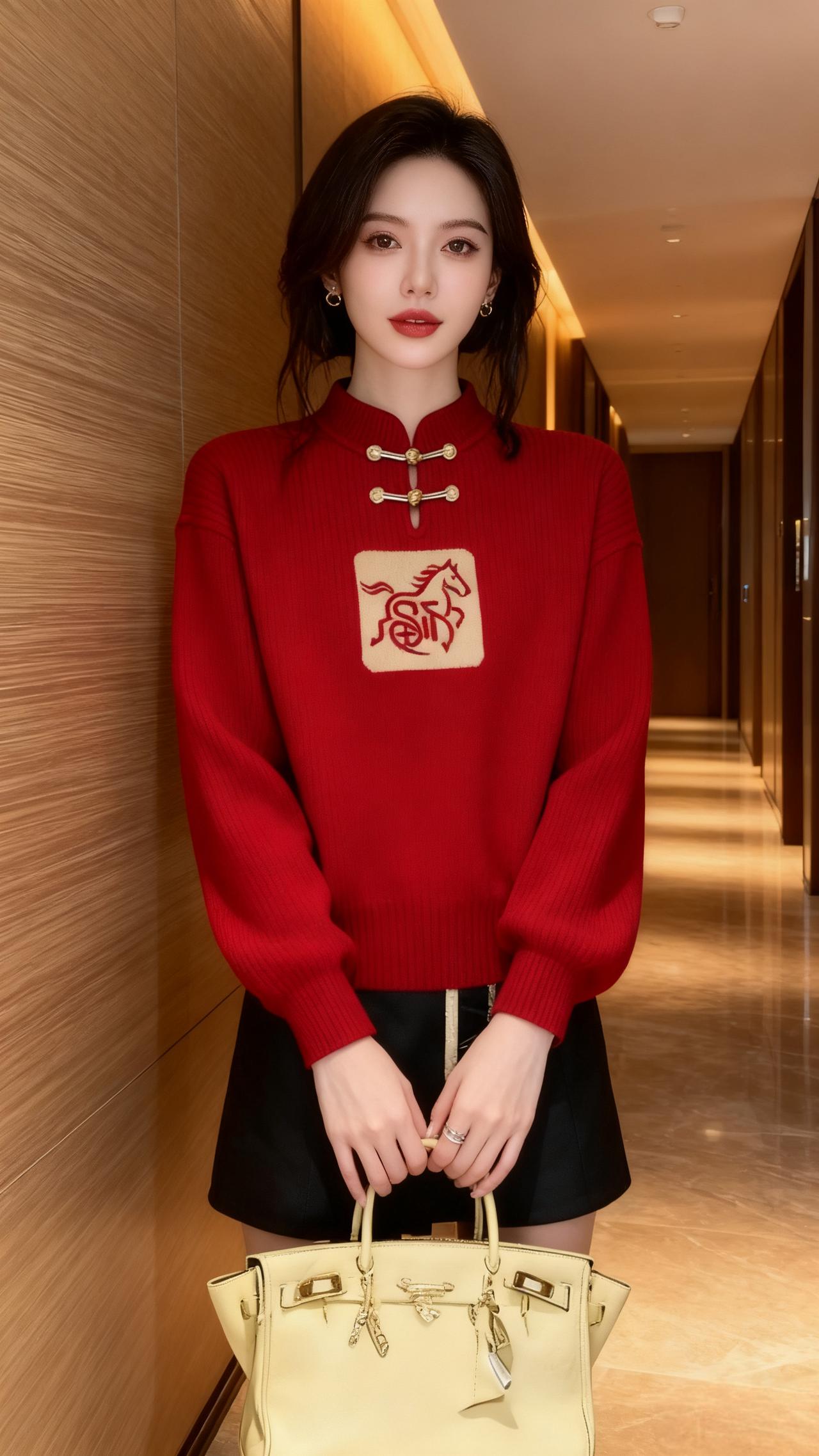 红毛衣 温柔穿搭 新年穿搭 时髦穿搭 上衣穿搭