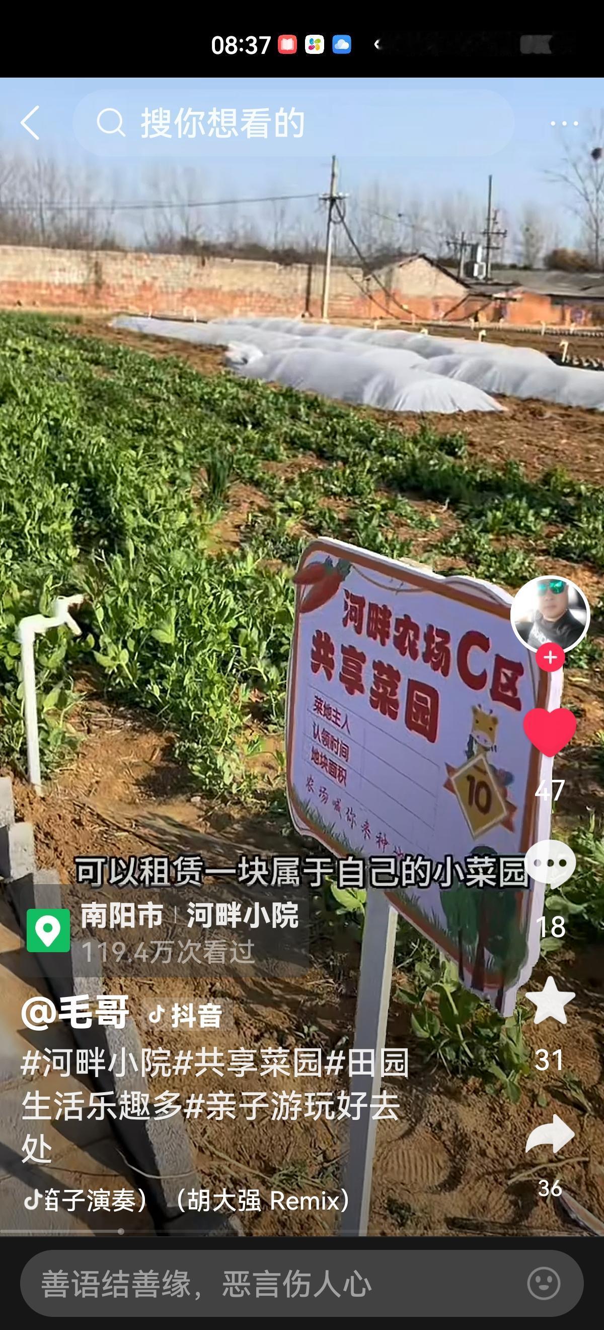 据媒体报道,共享菜园在南阳悄然兴起,为有着农村田园情结的退休人员实现了田园梦想。在共享菜园里,一般都是租几十平米,满足自己的体验需求就可以了,租金也不贵,每平方米每年15元。 其实,共享菜园并不是新生事物,早在几年前我们这里就曾出现过。开始还挺红火,但因为选择的是离市区较远的村子,来去都不方便,租客都要开车去打理自己的菜园,不太实用。 而南阳这十几家共享菜园,都是选择的城市边角散碎的耕地,经过整理开发成共享菜园,市民骑单车就很方便去共享菜园。 这个创意确实不错,既高效利用了市区闲散土地,又为市民带来了在田间地头劳作的快乐体验,一举两得。