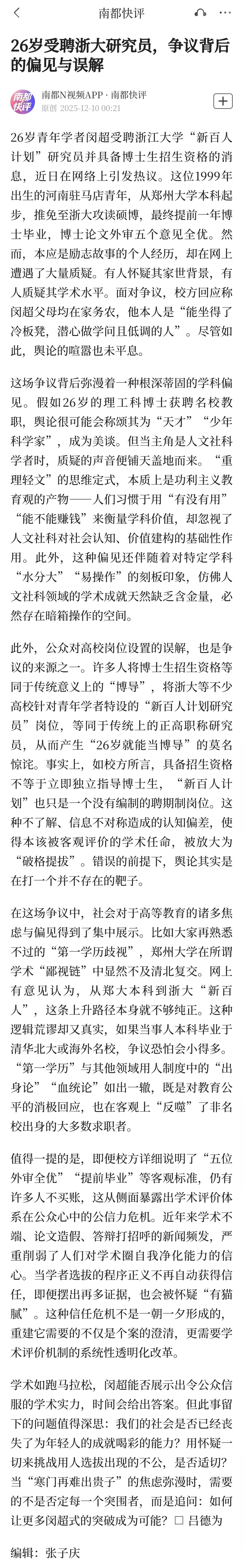 浙大“新百人计划”其实只是一个没有编制的聘期制岗位,这些“”研究员”还面临“非升即走”。但质疑者不这么认为。而这种质疑除了制造“舆情”,强化唯学历、唯头衔之外,能促进大学推进改革吗?