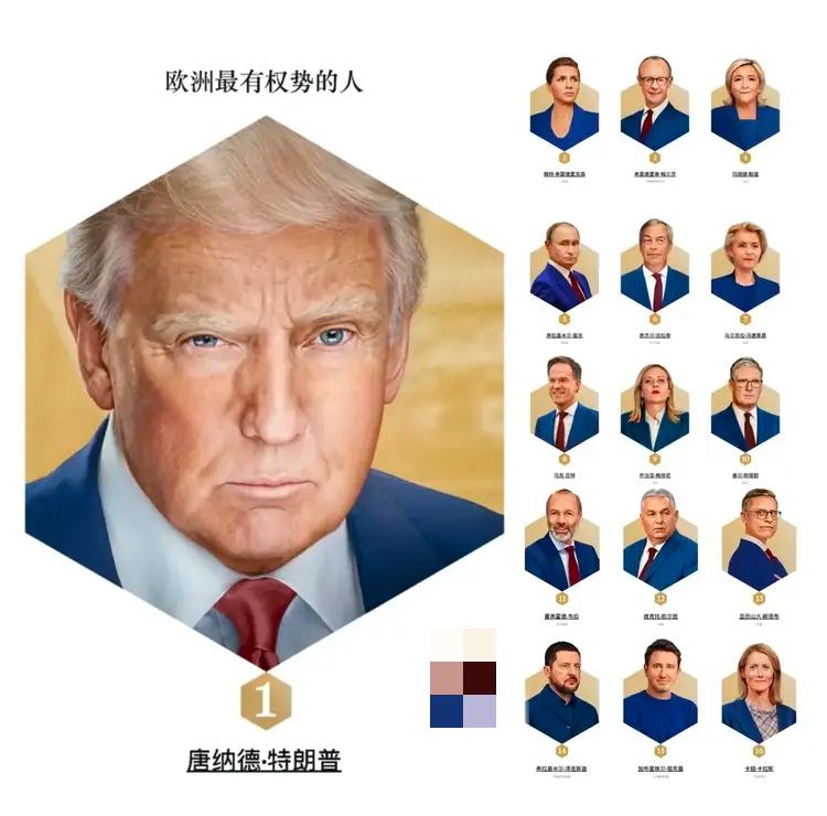 12月9日,美国《政治报》公布欧洲最有权势的人物榜单,颇具讽刺的是,美国总统特朗普位居榜首。一个美国总统成为欧洲最具有权势的人,何等讽刺打脸欧洲!因为俄乌战争,泽连斯基位列第14名,普京排名第5。 前十名里有4位女性!她们在欧洲有权有势,她们最多算得上是精致的欧洲政客,算不上有智慧的政治家!