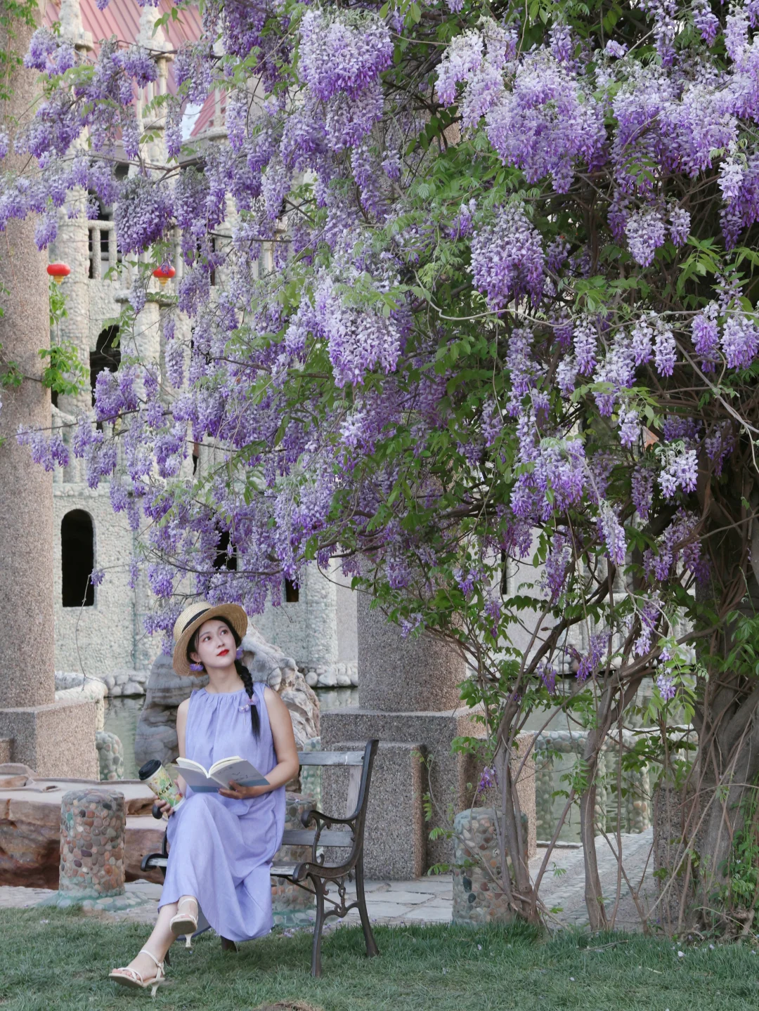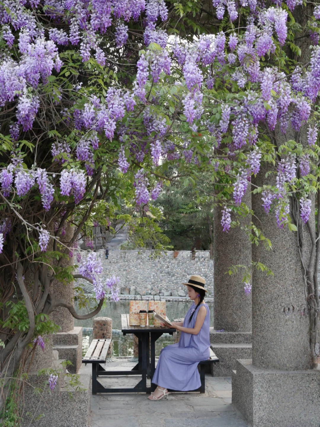 天津本周花海顶流🟣中华石园紫藤萝瀑布