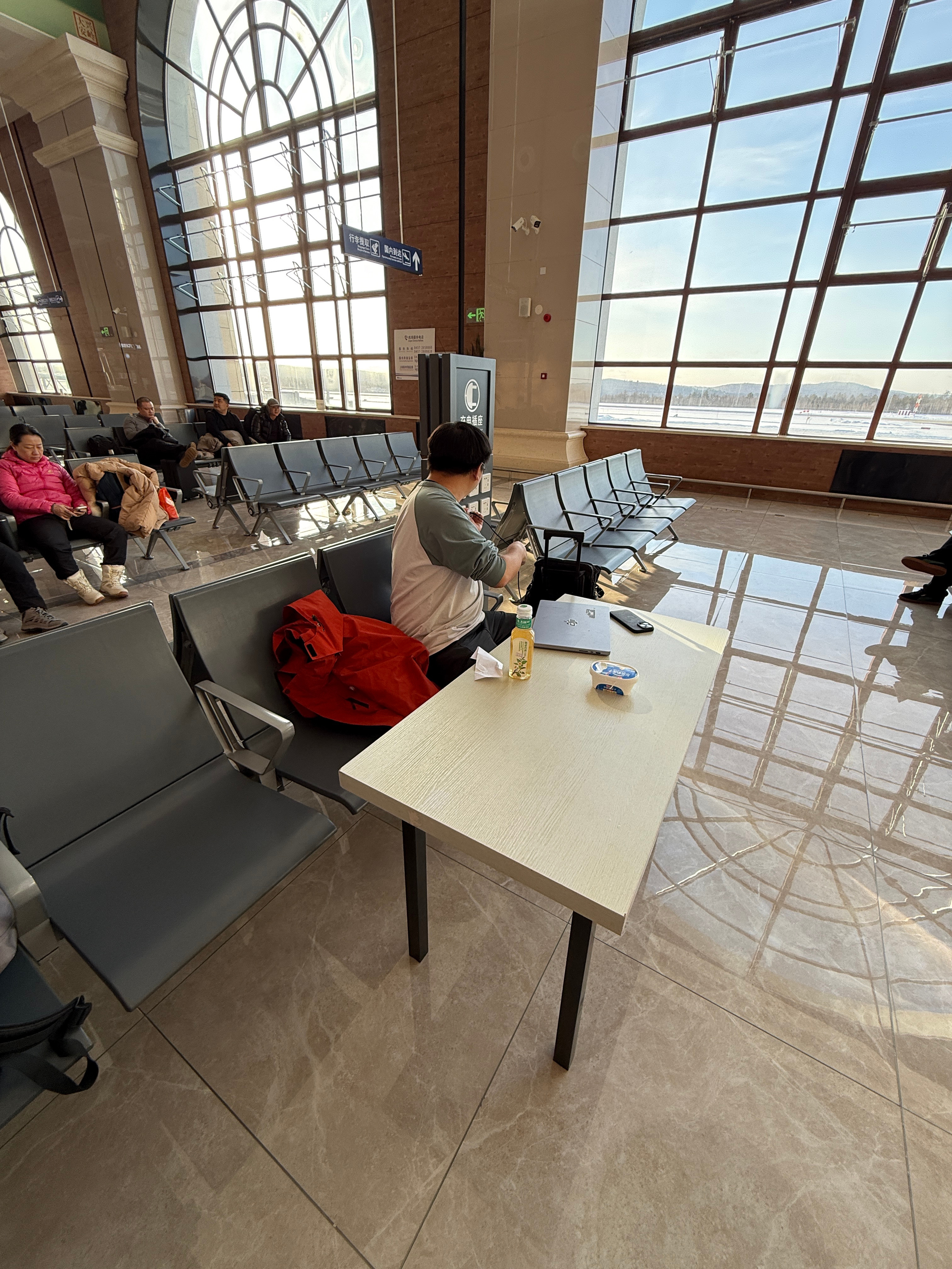 漠河机场挺人性化,给个餐桌可以拉来拉去,对于牛马媒体老师来说,随时坐下就能改片子,点赞