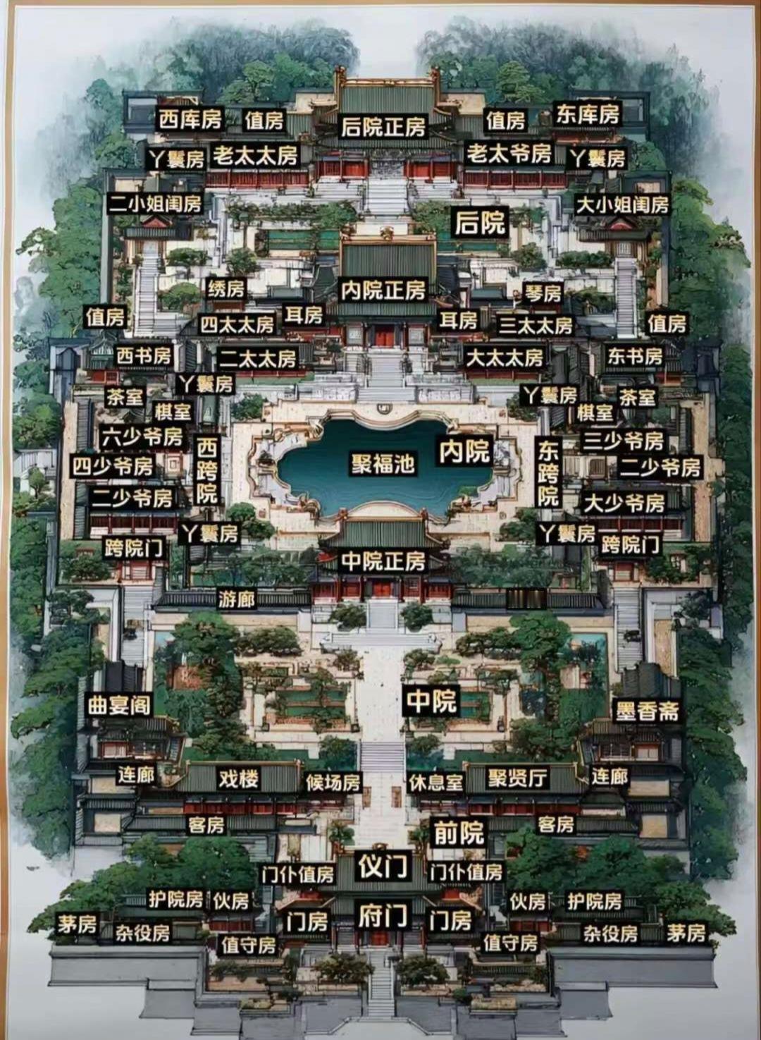 象这种规模的庭院,在古代得什么品级的官员,才有资格住。 少师、少保、尚书、中堂、大学士? 内阁、太傅、各府总管、待郎、附马? 附马肯定不行,不是品级不够,是这院里的某些配置,在公主那里就通不过。 通看院子,真的是眼花缭乱。