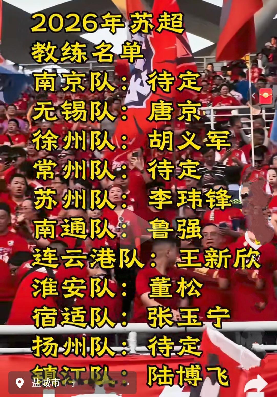 苏超明年会换很多教练,谁想去南京队执教? 苏州李玮锋很厉害,刚击败南京。 宿迁真是张玉宁啊?? 常州换不换教练很难说,樊毅带队差,但是口碑出奇的好。 镇江队是陆博飞?这不是我们江苏队的老队长嘛,都回来了![祝福]