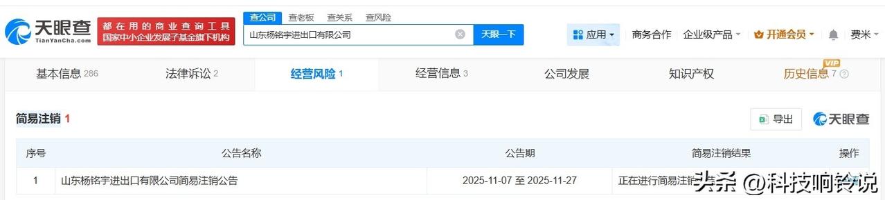 【杨铭宇黄焖鸡创始人名下一公司注销】 天眼查App显示,近日,山东杨铭宇进出口有限公司登记状态由存续变更为注销,此前,该公司已发布简易注销公告。 该公司成立于2021年6月,法定代表人为常铮,注册资本5000万人民币,经营范围包括技术进出口、货物进出口、食品进出口等,由杨铭宇黄焖鸡创始人杨晓路、李维森共同持股。 天眼查信息: