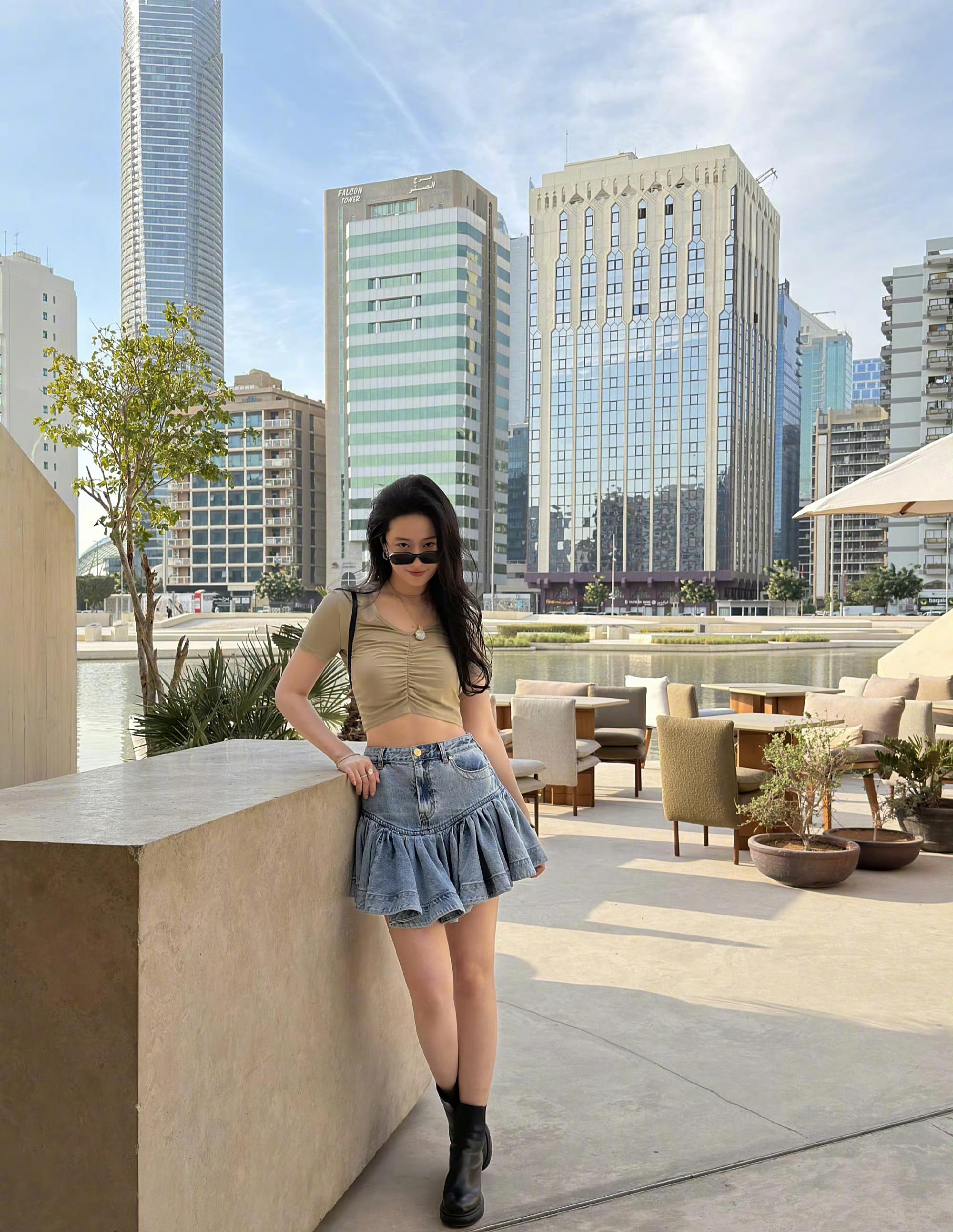 吴艳妮在成都穿着短裤大腿看起来很粗壮,表情自信又张扬