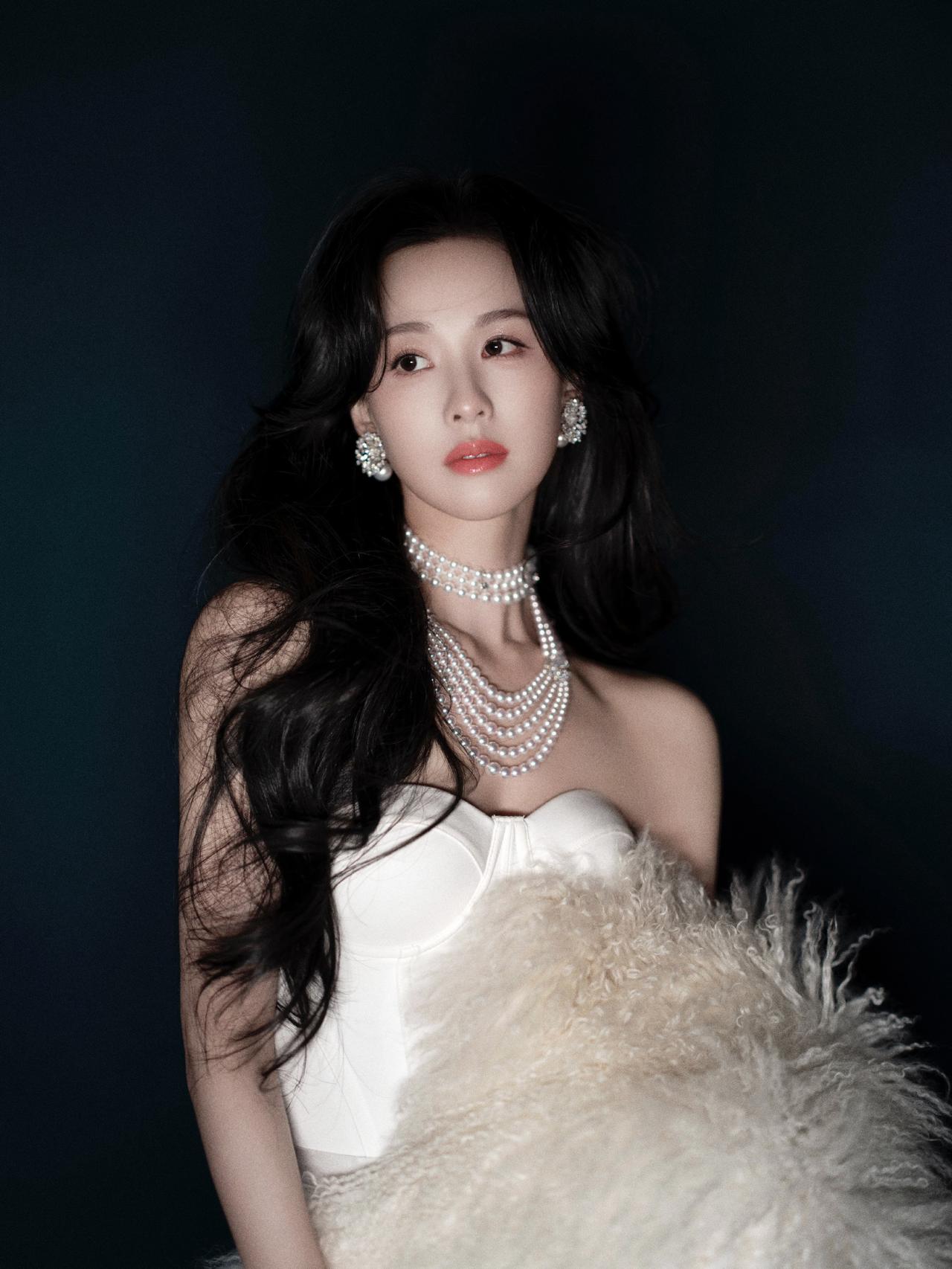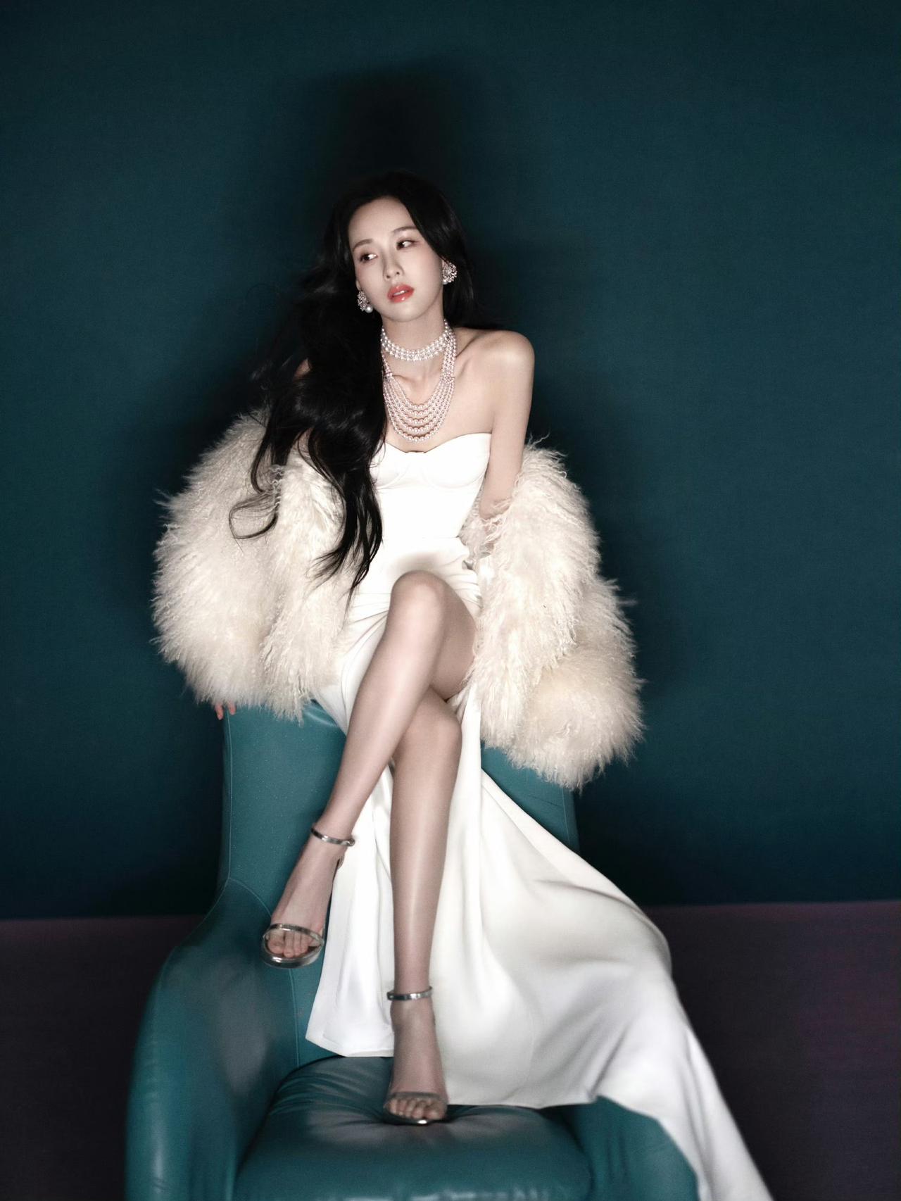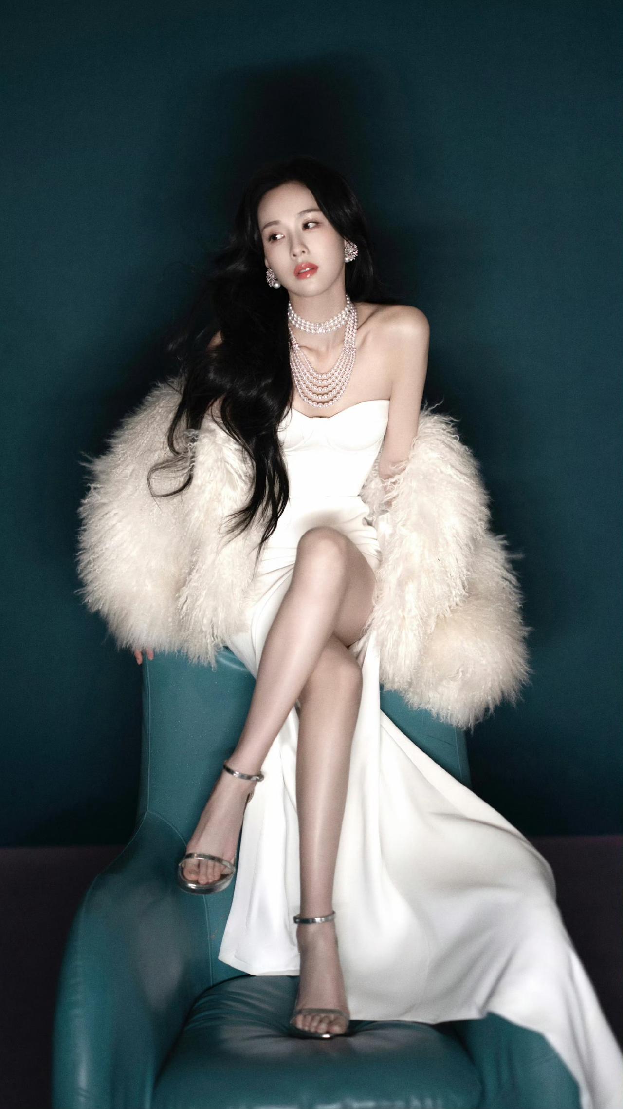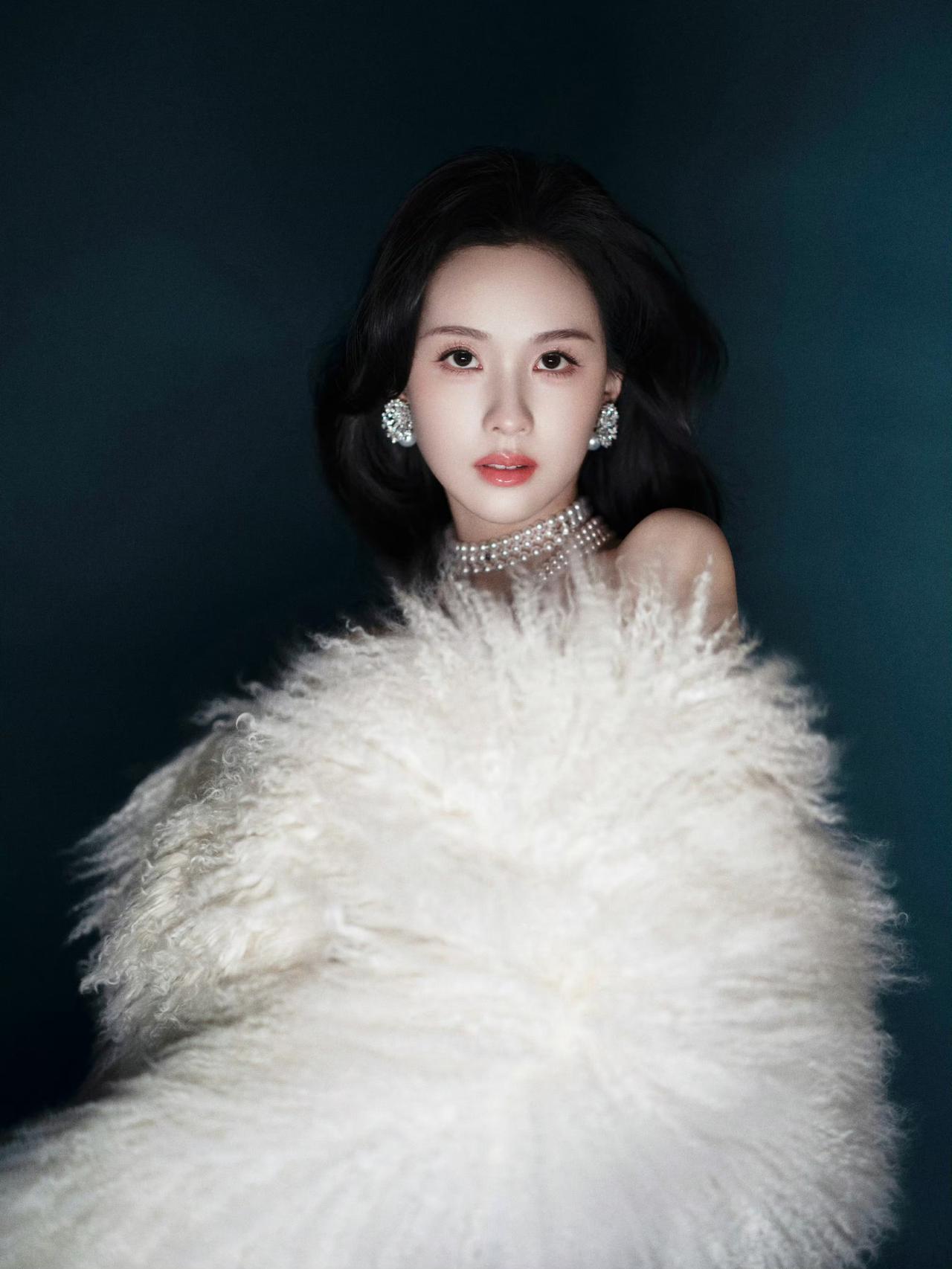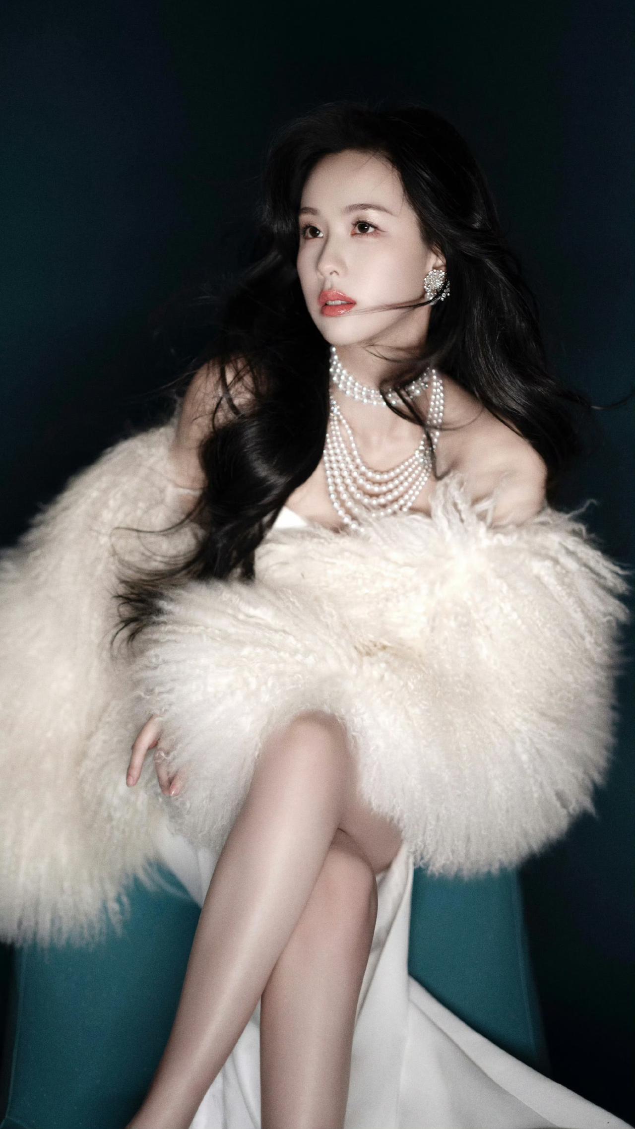 优雅白裙,奢华皮草,红唇黑发,尽显高贵气质。陈都灵!!