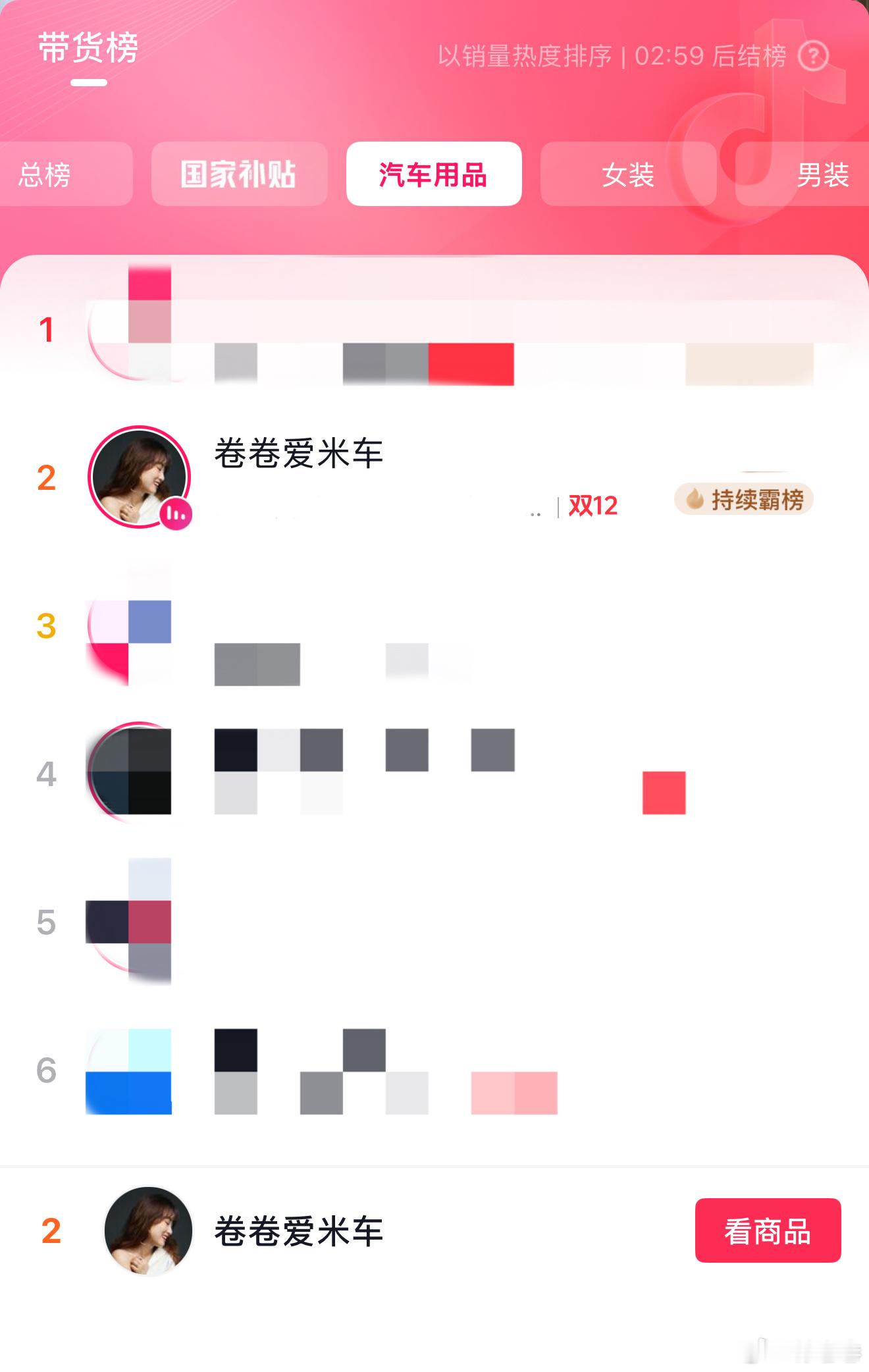 小号连续3天冲进全抖音汽车用品带货榜前5,最高第2……谢谢大家支持,我会继续努力……小米汽车付卷卷爱粟