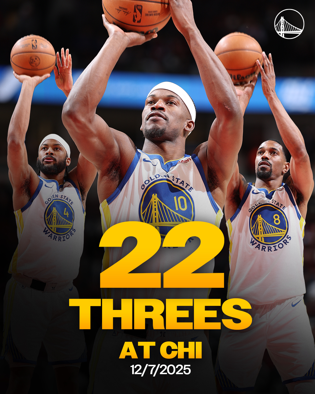 对阵公牛的比赛中,勇士命中22记三分球🎯