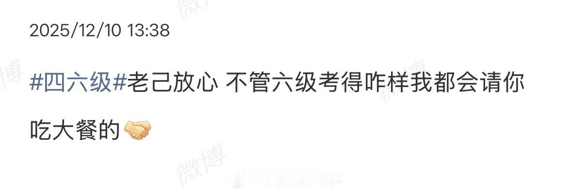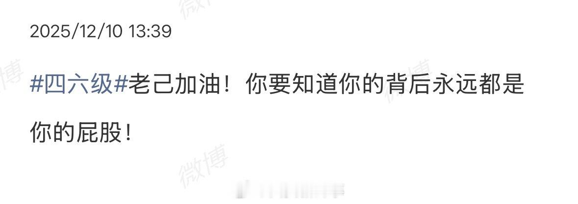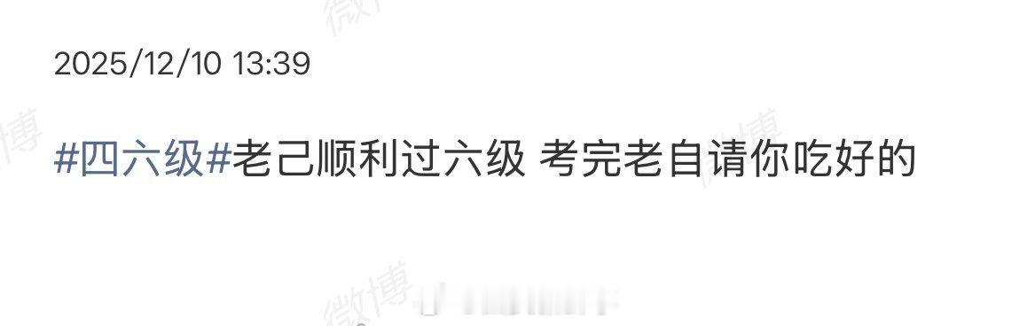 【老己放心考】四六级必过老己加油 2025年下半年四六级考试将于12月13日(本周六)开考,12月10日,有关四六级讨论引发热议。不少考生也给自己加油打气,“加油老己,四六级必过”、“老己加油”、“老己放心考,考完请你吃饭”。也祝四六级考生考试必过,刷高成功。