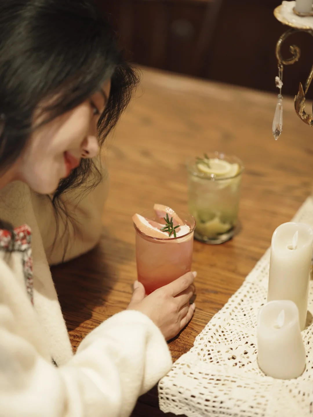 街灯缠上金箔,橱窗飘起装饰的细雪,十二月一到,整座城便跌进暖融融的甜梦。和朋友约的晚餐,推门便被松枝与肉桂香拥抱——餐厅早早就系好丝带,装饰了圣诞树。杯沿亮着细闪,红色与绿色的碰撞,每处细节都在说:节日快乐。