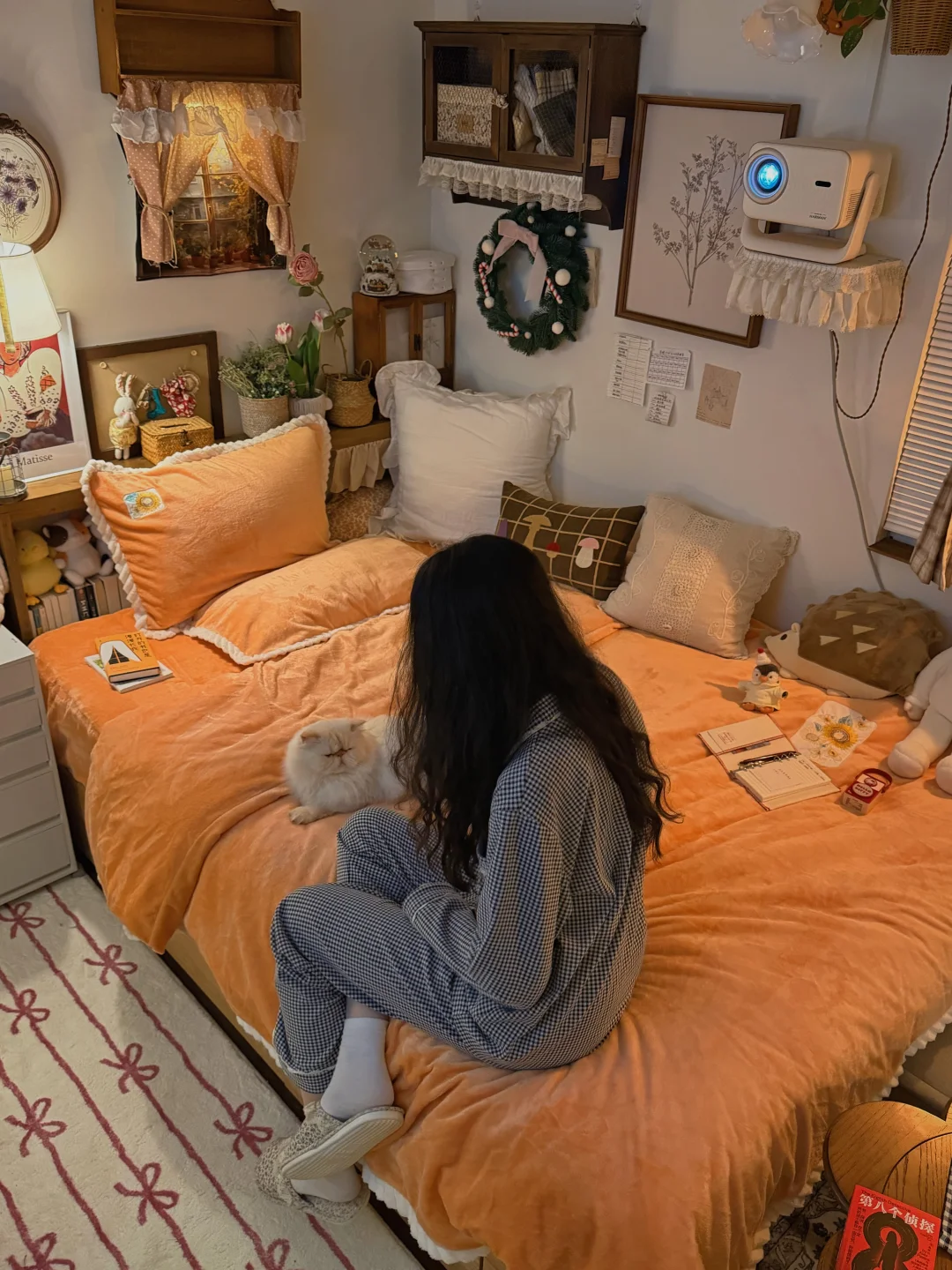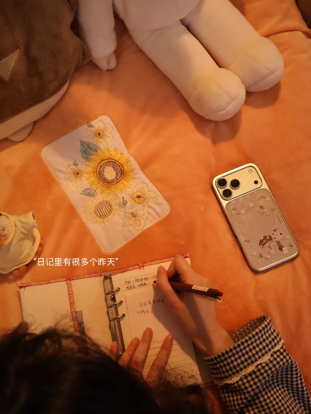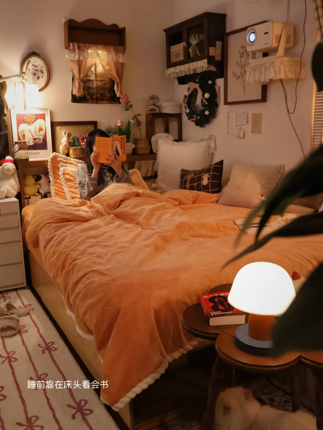 /分享我的暖冬10平小卧室布置小巧思༼⍤༽⬇️⬇️ *铺着牛奶绒的橘色小床铺 *一张1.4m的大书桌 *随时可以护肤的化妆角 *放满美食的小茶几 · 小床换上了冬日温暖的四件套 ——富安娜牛奶绒四件套 精致的向日葵刺绣🌻不失单调 高密牛奶绒不易掉毛 植入电导丝不易起电睡着更亲肤 · 床头有喜欢的读物 床边有柔软的抱枕 时而趴在床上写手帐 时而窝在被窝里阅读 · 日记里有很多个昨天 ·