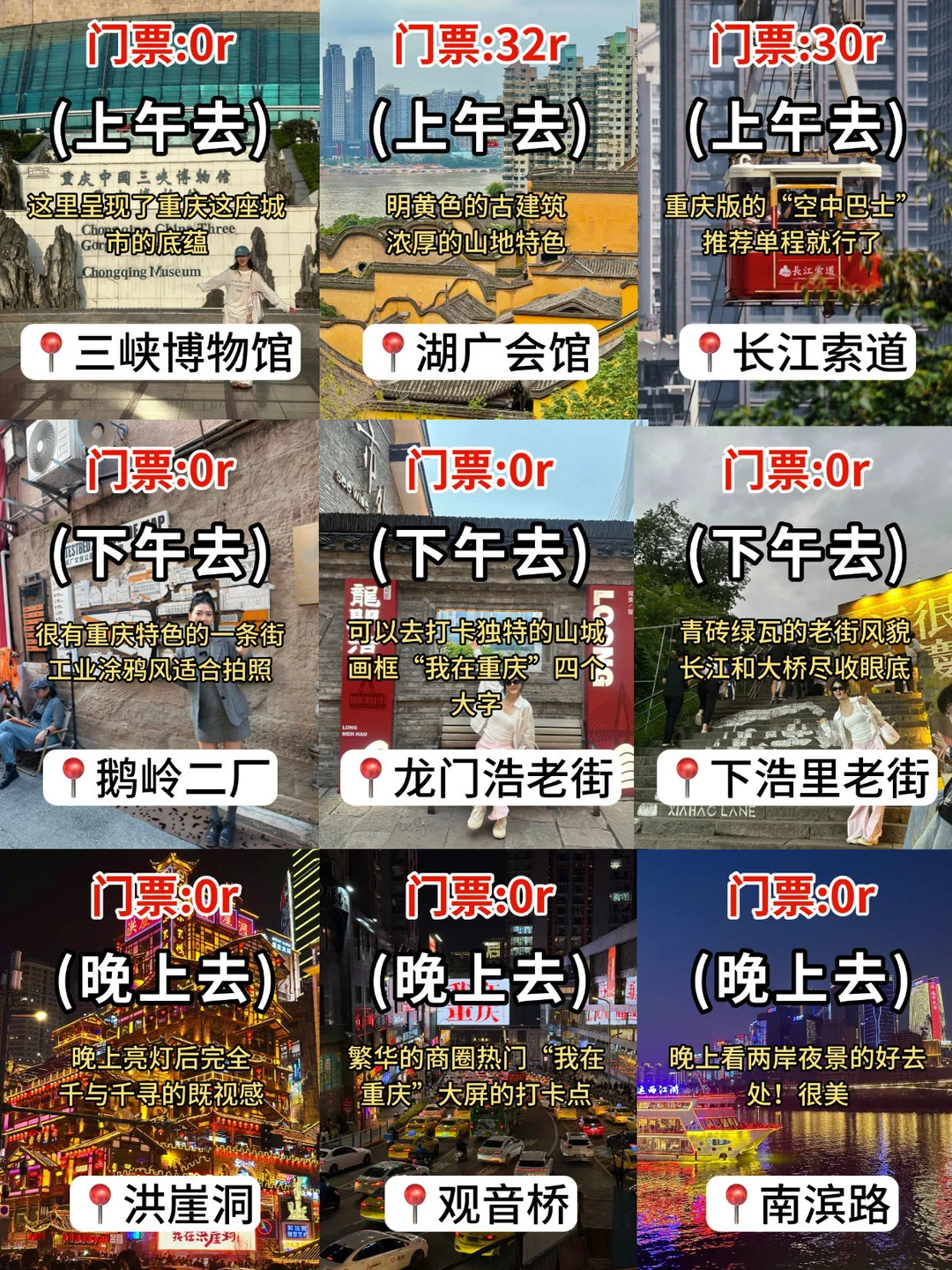 我刚从重庆回来,后劲太大了! 这地方真的“有毒”——白天是3D魔幻山城,晚上秒变赛博朋克!导航失灵?正常!在重庆,迷路才是正确打开方式🌆 分享一下我这次去重庆的旅游攻略!纯玩+纯吃攻略,吃喝玩乐一篇攻略直接搞定! - 💨美食选择 👅烤匠麻辣烤鱼(观音桥大融城店)—重庆烤鱼他家的经典麻辣烤鱼好吃! 👅惠火锅(解放碑店)—巷子里的重庆火锅店 👅天棒老火锅—朱一龙同款重庆居民楼老火锅店! - 🐼更多游玩攻略直接戳这里-