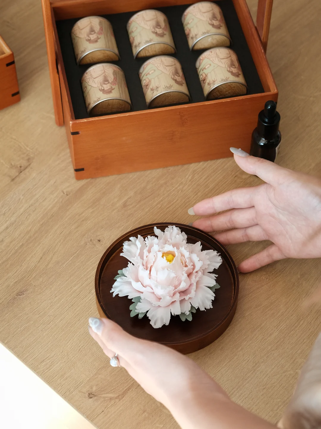 先点赞收藏 我怕你到时候找不到~ 这是来自德化的手捏瓷花 从花瓣到花蕊都是匠人手工雕刻 花瓣薄可透光 花蕊栩栩如生 每一处的细节与真花无异 烧制10朵只能用3朵... 它不仅是个绝美摆件 还是个香薰 一滴精油 便有了真花的香气与灵魂 放在家里撑得住氛围 为了方便送礼的朋友 外包装设计成了中式提篮 里面放有6罐云南白茶 自己用也是非常不错的好东西! 年底了 乔迁礼物、送领导、送长辈 对方收到一定会夸你!