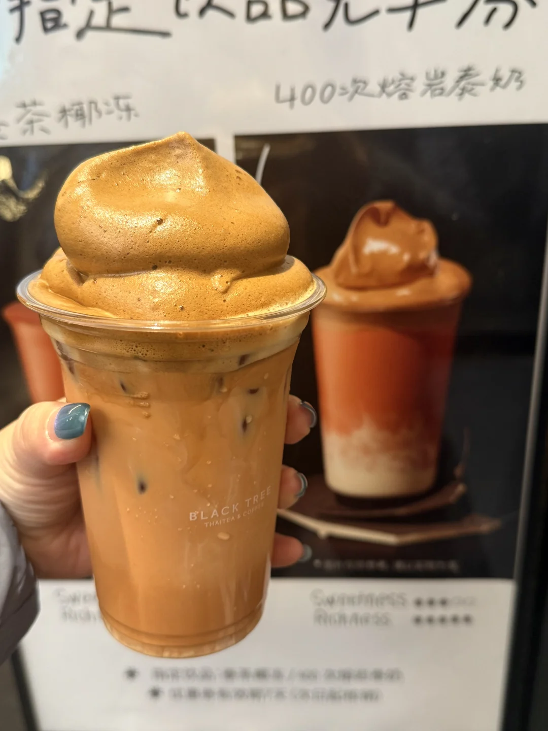 ✔️400次熔岩泰奶:泰茶+芝士酪乳+400次熔岩咖啡的组合太会了!茶香混着咖啡香超浓郁,完全不齁甜,喝起来醇厚又清爽,层次感直接拉满~