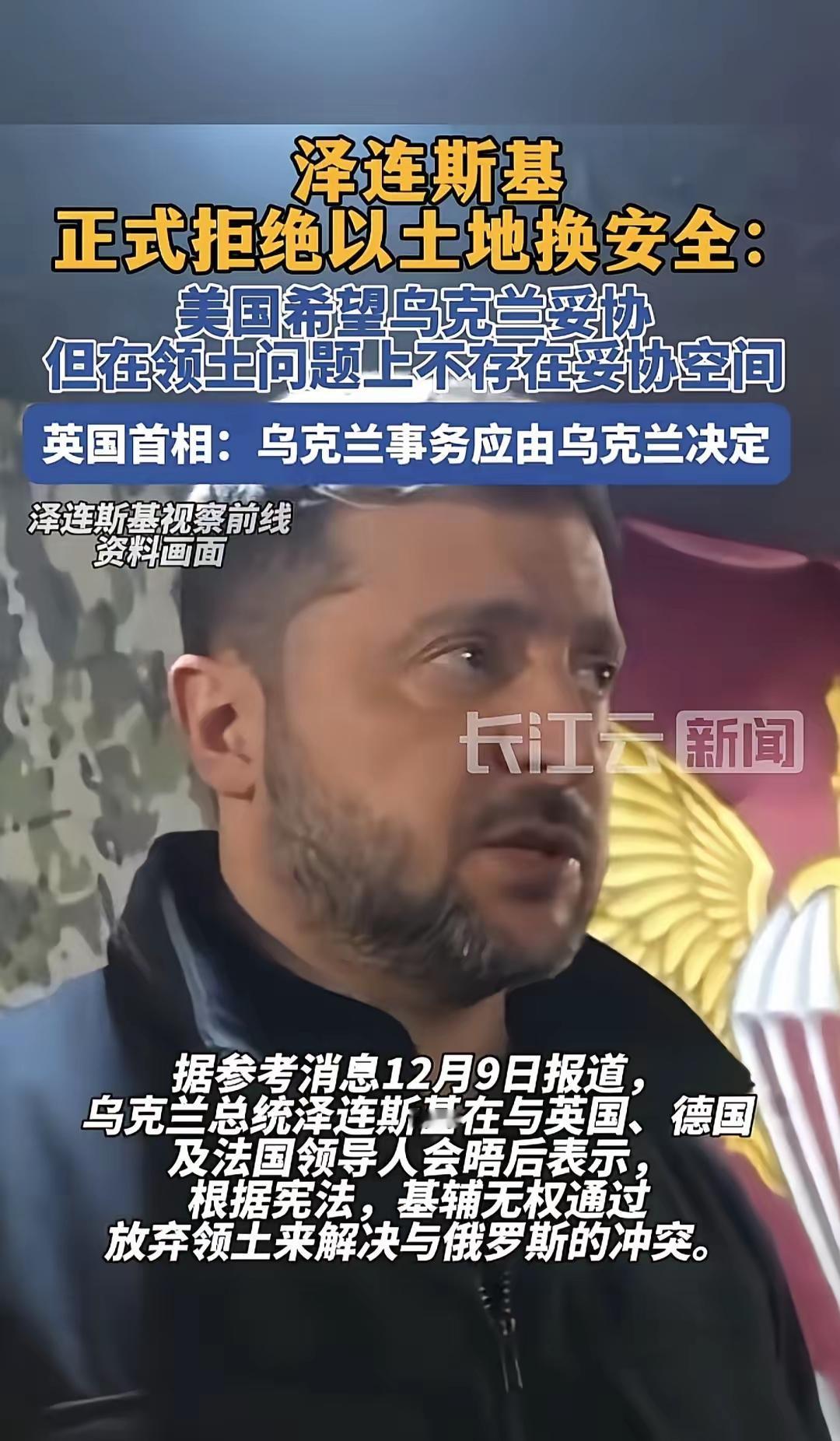 当地时间12月9日,乌克兰总统泽连斯基正式发布声明,拒绝美国提出的以土地换和平方案的可能,特别是回击了美国总统特朗普类似于对俄投降般的计划。 特朗普那28点和平计划,后来缩成19点。要乌军撤出顿涅茨克部分地方,还让军队不能超过60万人。这哪是和平,就是逼乌克兰让地。 美国还想拿1000亿俄罗斯冻结的钱,说要帮乌克兰重建。其实自己要分一半利润,算盘打得太响了。 泽连斯基硬刚是对的。乌克兰法律和国际法都不让割地,更对不起拼命打仗的士兵和老百姓。 就说巴赫穆特,乌军和俄军打了快一年。城里房子炸成废墟,士兵啃干粮守阵地,硬是没让俄军全占。现在让割地,这些苦不白受了? 美方还在逼乌克兰让步。一边压泽连斯基松口,一边让俄罗斯降低条件,把人家国家命运当筹码。 欧盟这次没含糊。冯德莱恩说支持乌克兰主权,卡拉斯提醒别掉俄罗斯的坑,不让美国说了算。 俄军还在往前推。普京早说了,不接受欧洲改方案。美俄偷偷谈了,没谈拢,和平看着更没谱。 泽连斯基要的是真能管用的安全保障。不是以前那种光说好话不办事的承诺,这要求一点不过分。 美国就是想借和平的名义,管欧洲的安全,抢能源好处。乌克兰成了倒霉蛋,被人随便摆弄。 前线士兵还在流血,老家还在被炮轰。所谓的和平计划要是让乌克兰丢地,就是对不起那些死去的人。 大国之间算计来算计去,乌克兰的脸面和主权不能随便卖。泽连斯基拒绝,就是守住了国家的底线。 各位读者你们怎么看?欢迎在评论区讨论。 美国乌克兰协议