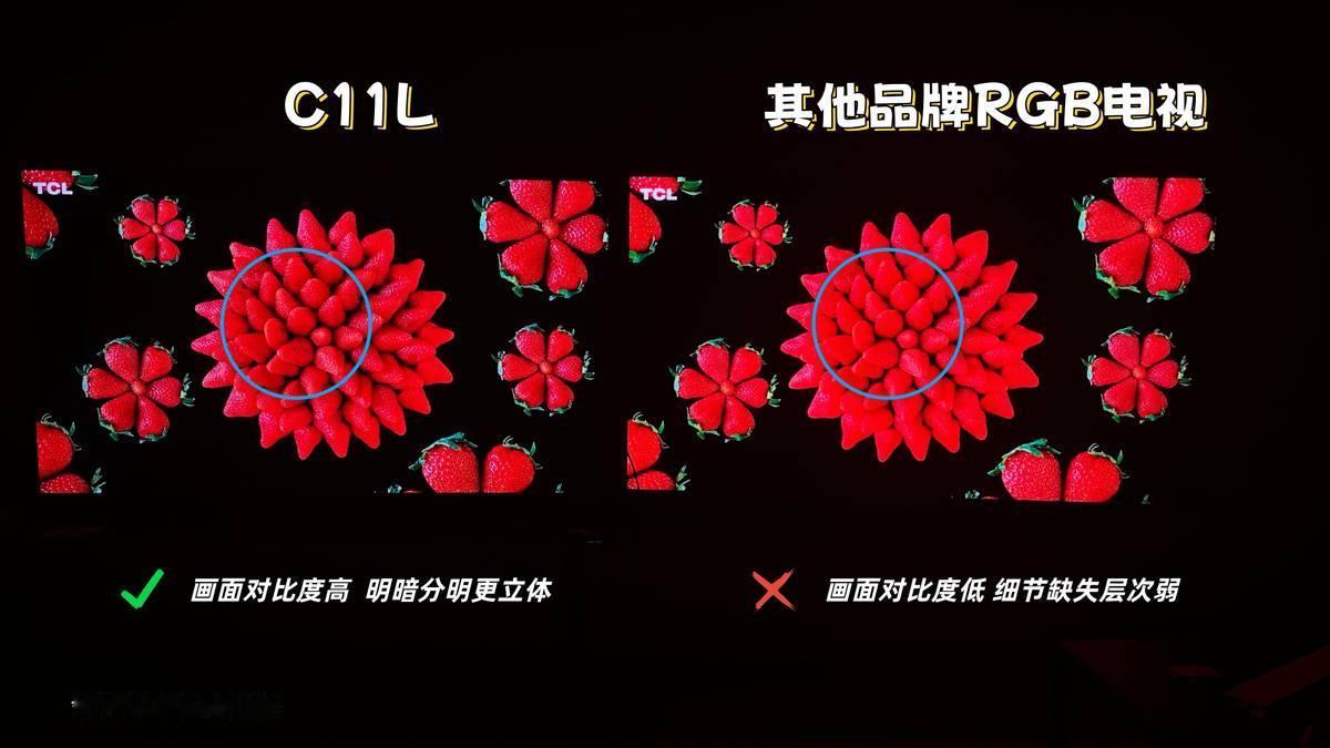 《疯狂动物城2》票房破20亿,冲入进口片前5!第二代RGB电视,成沉浸重温神器 不由得你不信,最近《疯狂动物城2》真是太火了,票房直接破20亿,冲进了国内进口片前五。我自己也去刷了一遍,不得不说,里面那些五光十色的动物城,还有朱迪和尼克那些小表情,真的太让人想钻进屏幕里玩一趟了! 在IMAX厅看的时候,那种包围感特别强,色彩又鲜亮,动物毛发的细节都清清楚楚。但走出电影院后,想在家重温这种沉浸感,其实挺难的。 你说Mini LED电视好,就是色彩差点意思;上RGB-Mini LED电视嘛,又会少了点层次感和真实感。反正就是色彩和对比度没办法全都要,而且还容易出现偏色、褪色、串色和色晕四大问题,怎么看都差一点点。特别是串色问题,就像图片里的白色广告字幕,边缘已经被绿色的背景“浸染”了,看起来就是“一坨”。而对比度不足的问题,就更明显了。看这些草莓变成“一张纸”就能知道,完全没有层次感可言。 但最近看到TCL新出的C11L电视,这第二代RGB-Mini LED电视,让我有点心动。它用的是改进型RGB技术,不仅通过更换更成熟的方案,大幅优化了四大问题,还做到了100% BT.2020高色域。特别是对喜欢看动画片的人来说,颜色鲜艳还稳定化,那是很久加分的。 不过光颜色好还不够,对比度跟不上,画面就会缺少层次感和真实感。C11L这次用了RGB万象分区技术,能做到“一区顶多区”,带来更强的控光能力,从而提升动态对比度。再加上它那块蝶翼星曜屏,有7000:1的原生对比度。这样一来,动物城里的动物、身后的大树、天空的高等等,就会层层拉开,真实感就来了。 加上C11L这次直接配了B&O的调音,才是身临其境的关键。这个牌子很多玩音响的人都认识,还是乔布斯的偏爱品牌。它不只追求“响”,更多的是追求还原细节。电影里那些细小的环境音、配乐里的层次,应该都能有很好的表现。 有时候觉得,在家看电影,不只是看个剧情,更是希望能在放松之余,有“进去一会儿”的沉浸感。只有色彩、对比度、声音都到位了,才能让你拥有逃离日常的片刻。 真香RGB神机TCL改进型RGB电视是版本答案 新一代RGB电视上市