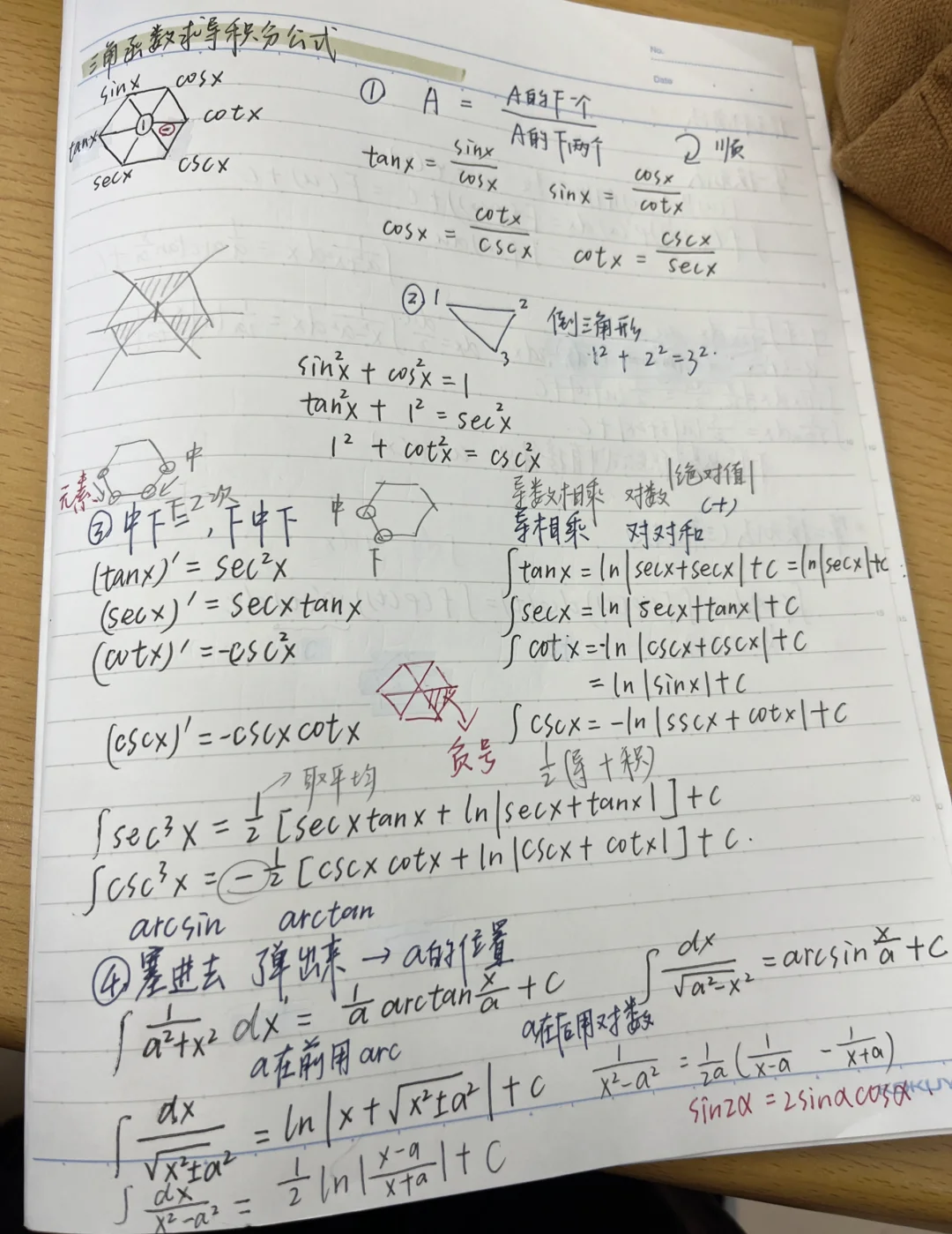 三角函数求导积分公式 最近学不定积分,好多三角函数求导积分根本背不过来,然后就发现了这个记忆方法,非常非常惊艳 👾椰椰笔记👾