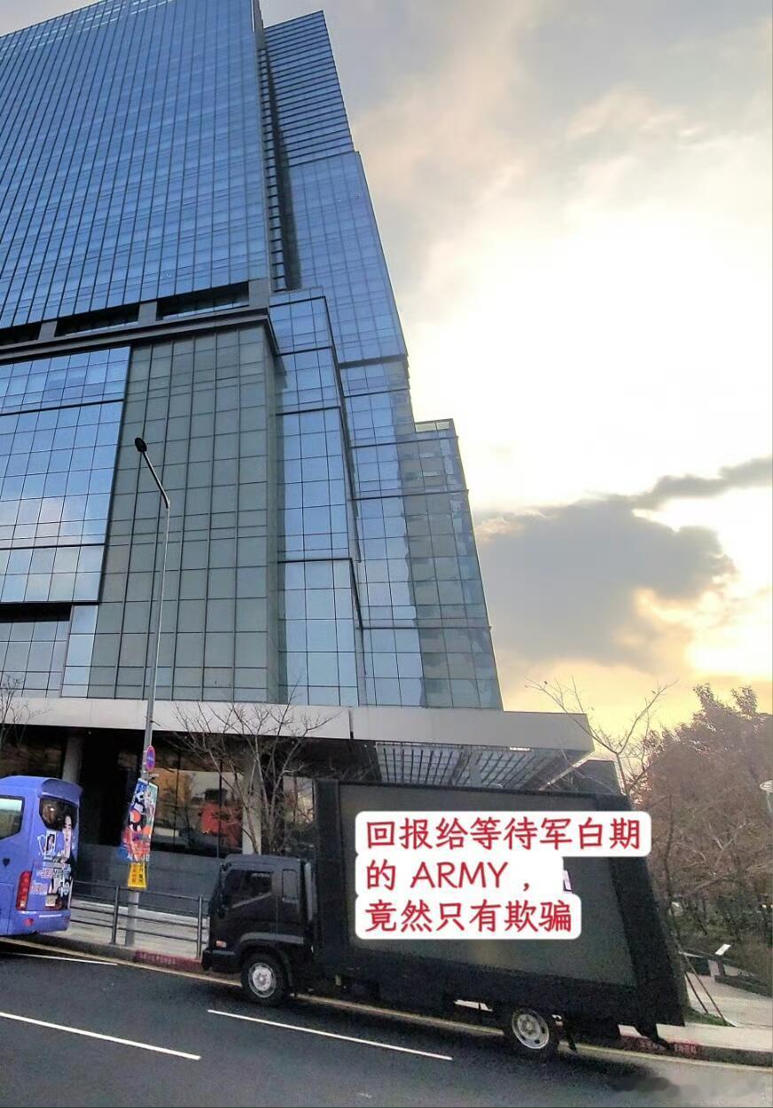 韩粉卡车抵制田柾国韩国粉丝开卡车抵制田柾国,咱就是说,粉圈维权都这么有排面了?韩国粉丝要求田柾国洗掉情侣纹身